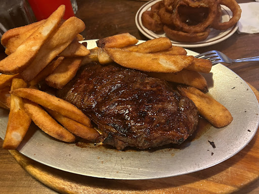 Went to Steve's Sizzling Steaks (SS) and I can confidently say this will be the last time I will ever go there. Steve's Sizzling Steaks is an institution and been there for many years. It has its core customer base and this review is not for them but for the first visitor who may want to try this establishment. I've been coming to SS for years but I'm a steak guy and not the biggest fan of this place, the reason I kept on coming back was that my young boys love the steak specifically for the salty sauce they put on their steaks, and delivered on a hot sizzling metal plate with fries. This is their signature style. I hated going there but for my sons who wanted to go there we said ok, we'll grab dinner. After this dinner even now my youngest son said he doesn't want to go back. Let me explain - the 1st main issue with Steves is their pricing. They're steaks are ok grade. They're not using USDA prime cuts here. Using their salty sauce masks the quality of meat, and makes it more tender to eat. But during and after COVID, Steves like many other restaurants bumped up their prices. As someone else mentioned here, they're charging $65 for a Filet Mignon steak - which is on par what you pay at a 'real' steakhouses like Capital Grille down the highway. This is highway robbery. Decor - the place is more diner meets hunter lounge inside and isn't what you consider your traditional steakhouse venue/interior as well. Parking is bad - hard to get spots even on a none busy night, and its right off a busy part of Rt 17. as well. On this particular dinner night, it was the worst. My son asked for medium-well (he's a kid) and the steak he got was basically burnt to a toast. It was so burnt that all the sauce was evaporated. Again this is a $65 steak here. On top of that they were serving burnt/black fries with the steak. Look at the pics. Ridiculous for them to served overcooked fries like that. My son obviously didn't enjoy the steak and now understanding the value of money cause he does weekend jobs to make spending money, he knows the value of $65 (I paid but he still likes to look at the bill at restaurants). He told me he doesn't ever want to come back. So summarize to 1st timers: don't believe the ratings and if you want some good steak don't bother to come unless you are a high net worth individual and have money to burn. Lots of better steak places in the area including Capital Grille, Eddie Vs, Ruth Chris, and more. Note: On the uploaded pictures thats my NY Sirloin (ordered medium), not my son's steak. But I got burnt fries also. Look at the onion rings as well. Burnt.
