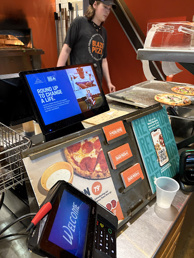 My fiance and I are big fans of blaze pizza but everytime we come to this location there is always difficulty. However, today we decided to give it another chance. Which was a mistake due to the fact that this was the WORST experience we have had at a blaze chain location. Where to begin, they we out of 6 core items that we order anytime we come to a blaze. The workstations where the ingredients were was a MESS leaving residue on all the packaging, the ingredients that were available were chopped so unevenly I couldnāt even taste my pizza because there was a green bell pepper the size of my palm on there. I couldnāt tell on the work station where one ingredient started and the next began as they were all a mess. The guys assembling to pizza were nice for the most part but took little care in how everything was put together, not even close to an even distribution of toppings. When it was time to throw the pizzas in the oven I asked for all of them well done. The guys making our pizzas said okay, and I reiterated it to the guy actually making the pizza. I was met with an āI know.ā And obviously he didnāt āknowā because all of our pizzas were underdone with the worst being the cheese bread (see picture below). It was literally raw dough with cheese on maybe 60% of the bread with a slight brown tint on the bottom if Iām being generous. When that nightmare was over our pizzas were boxed before even asking if we wanted a drizzle and when I asked for one I was looked at like I was insane, like is that not what Blaze is partially known for? After he got our side of ranch (ranch all over the side of the cup which got on all of our boxes) we left. We live about 2 minutes away and I donāt think it would matter if we lived on the sidewalk out front it still would of been the soggiest meal I have ever attempted to eat. I will NEVER come to this location again and every time the opportunity prevents itself I will let others know how bad this location...