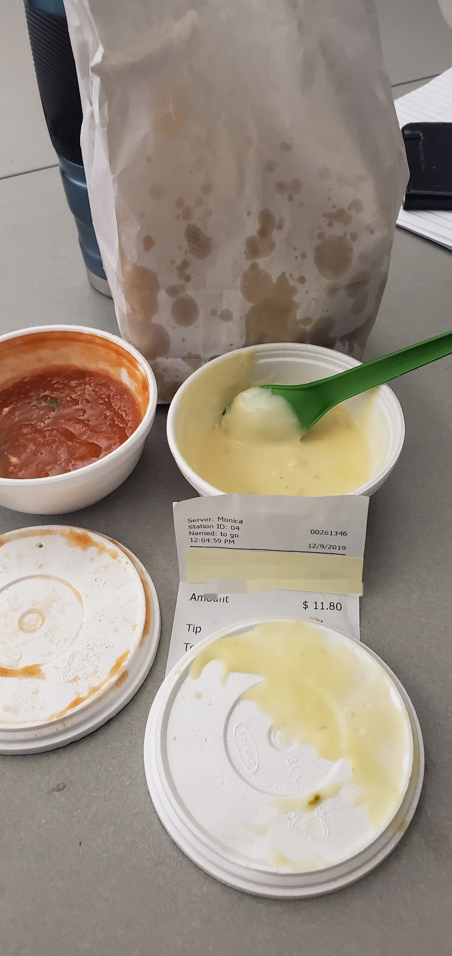 Read moreSooo. I confess, I have never been here before. So perhaps, some of this is my fault. I stopped by at noon 12/9. It was busy but not super crazy busy. All I wanted was a snack (Chips/salsa/ Queso). This place is usualy busy, so it was a test to see if it's worth it. The young woman at the receptionist counter asked me what I wanted. I said I'll take a large queso and a 8oz salsa. I paid with my card.... I should preface this by saying- I rarely give electronic tips. 98% of the time, I give cash and I ALWAYS tip well. I start at 20% and it goes up or down depending on service.(so yea, I've tipped 100% before!) But for carry-out, it's always a flat 20%. The moment I paid and before I could get cash out, the girl walked away scowling. Ok. I get it. She thought she was getting stiffed. When she brought my food out I handed her a few dollars and said thanks. She smiled wide and said thanks back. But when I got to work.....??? ROFLMAO, SHE STIFFED ME! I got two 6-OZs!! And after looking online at their prices.... she over charged me (bc that is NOT a large queso)!! Ooh bells. Well- lesson learned. I'll stick to where I know the servers deserve...