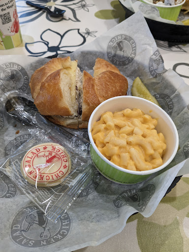 Very disappointed. Iâve been to other locations and have had excellent quality food. I mean delicious. I expected to receive the same quality and flavor at this location but was sadly disappointed. My croissant sandwich had a very minimal amount of chicken salad on it. I felt as if I was just eating bread and lettuce. However, the taste of the chicken salad was very good! My 3 year old daughter even loved it and she is hard to impress! The sides were the worst part. The Mac and cheese looked and tasted burnt. The sauce was borderline brown and looked and tasted terrible. Again complete opposite to quality at other locations. My daughterâs kids meal came with a side of fruit and it was slimy and mushy. When I brought both sides up to the manager, he didnât seem to really care and made it look like that was the normal quality of their product. After initiating if I could swap out the sides for something else, he accommodated which was nice. But honestly after spending $20 on a mediocre croissant sandwich and a kids uncrossable peanut butter and jelly, I donât think I will be going back. At least not to...