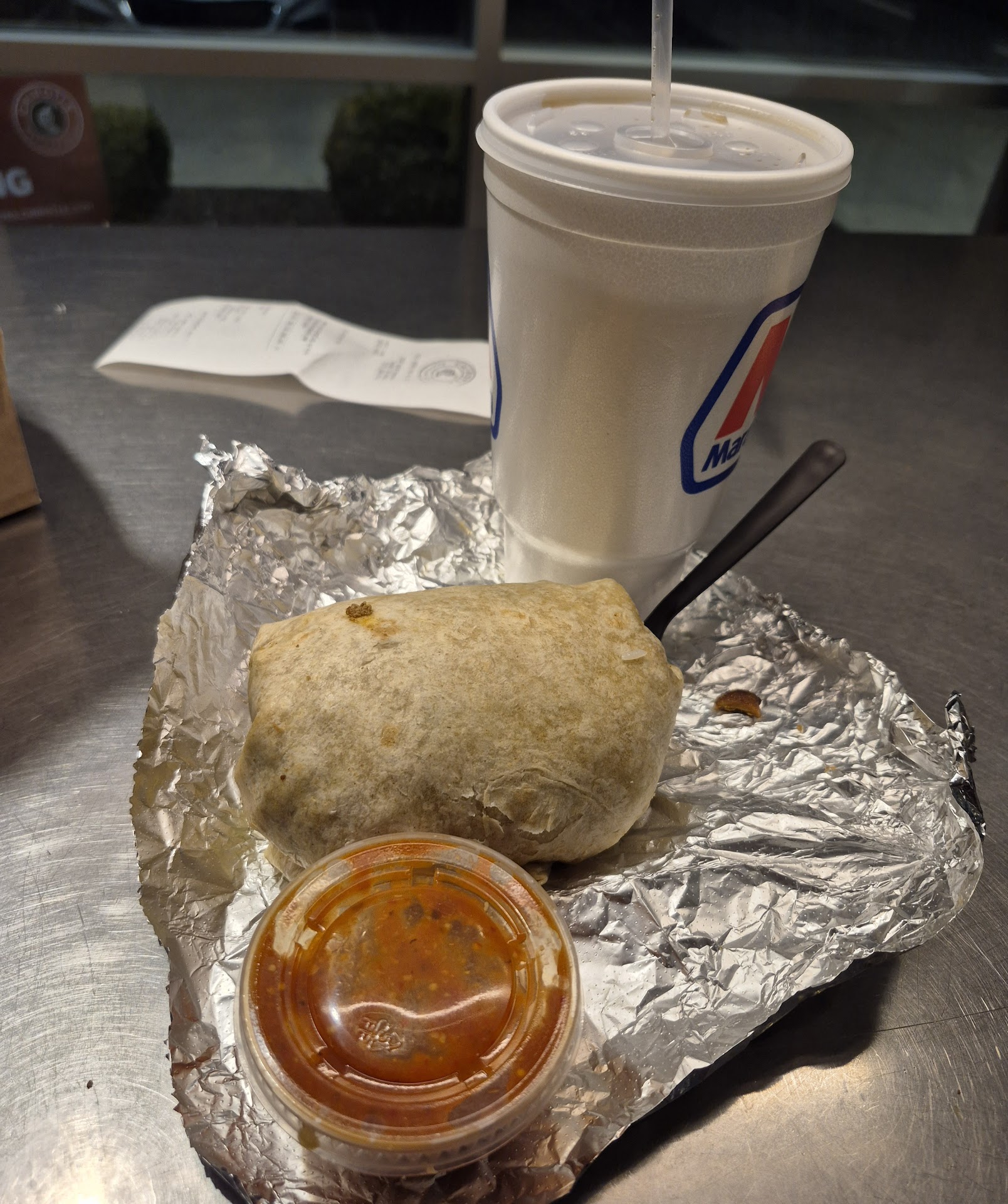 7-18-23 8:05 PM, worst Chipolte experience I've ever had. The sign on the door said "Due to National Avacado Shortage, no Guacamole". I look online and don't find anything about a shortage going on right now. Long line, but I decided to wait. Halfway up, they announced they were out of chicken and it would take 10 minutes for them to grill more. I counted 7 people in the back but only 2 people working orders on the line. Chaos behind the counter. Out of queso. Out of carnitas, a small amount of steak left, sofritas non-existent, black beans empty, counter a mess with ingredients spilled all over. One person was at the grill making more chicken, one person started putting chairs up, not sure what the others are doing but meandering around. Finally get to order, low and behold there's guacamole, "yeah, I just made some in the back" per the cashier. Rushed my burrito through in record time, barely steamed the tortilla, about a dozen black beans, and got the last of the barbacoa. Get home and barbacoa and rice at room temperature and unusually dry, guac tastes funny (confirmed by my wife) chips were either stale or not crispy.