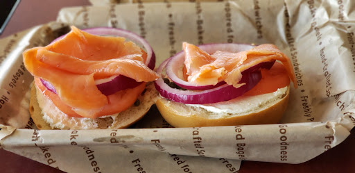 Jockey through the frantically crowded parking lot (liberally sprinkled with cavernous drainage pits) and squeeze past the endless drive thru line to find a parking spot. Wait in line to place your order. Wait in yet another line to pay for your order (if you're lucky both lines will be staffed by the same harried employee who shuttles back and forth between them, thus greatly contributing to overall efficiency). Send a member of your party to wait in line for a table while you wait in line (more like a scrum) for your food. If you manage to find a table that isn't liberally coated with crumbs and other food debris, getting there could prove a challenge. You'll need to wend your way between the haphazard chaos of tables and chairs, mostly occupied by immensely self-satisfied persons leaning back comfortably whilst discoursing loudly and authoritatively on any number of subjects and fondling their coffee cups. Would not be surprised to learn that some of them live in the dining area. The specially designed drink area encourages nonlinear movement, maximizing opportunities to wait in line for what you want. Tea dispenser empty yet again? No worries - just stand in another off-to-the-side line somewhere up front and eventually a friendly staffer will half fill your container (they're running low back there and need to conserve, dontcha know). Unfortunately they're out of the first two bagels you want, but hey! Choice three is available. Too bad they got your order wrong, but if you stand in line again they'll be happy to correct it. Eventually. (Before asking for a correction, be sure to weigh the time likely required against your remaining life expectancy.) Good workers, considering how overwhelmed they seem, and good food at decent prices. You'll just need to decide whether it's worth the hassle; could be, except perhaps if you're hungry and wait times push thirty minutes. Certainly, lots of other folks seem to like it. Need to change the name to Linesteins.