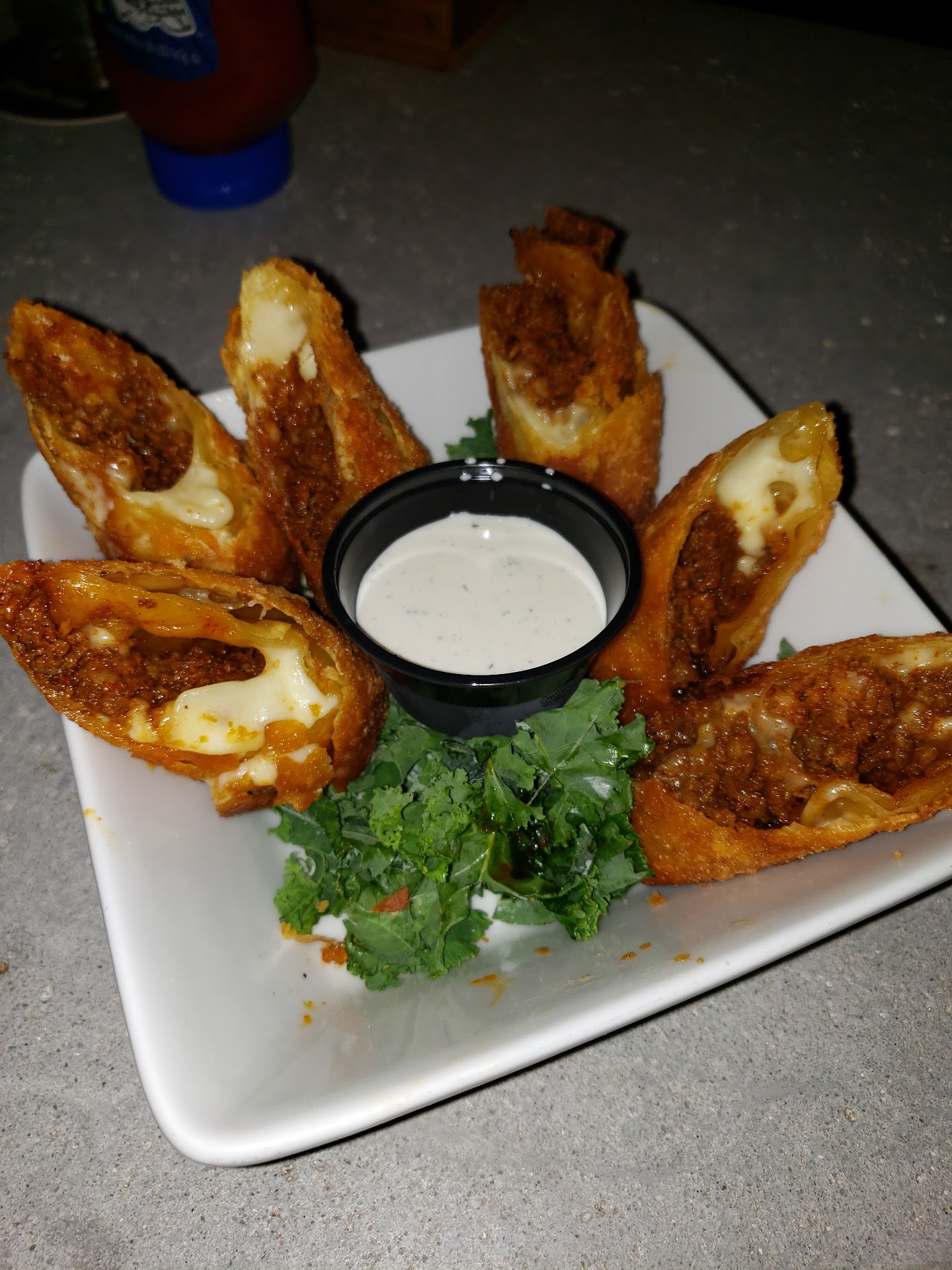 Sort of a mixed review for my wife and I. They offer outdoor dining in front in addition to their indoor open bar area. Due to the weather, we chose to eat indoors. It's fine, although the acoustics can be a little challenging as the noise seems to magnify and made things difficult to hear on occasion. Our server, Ashley, was attentive and personable.