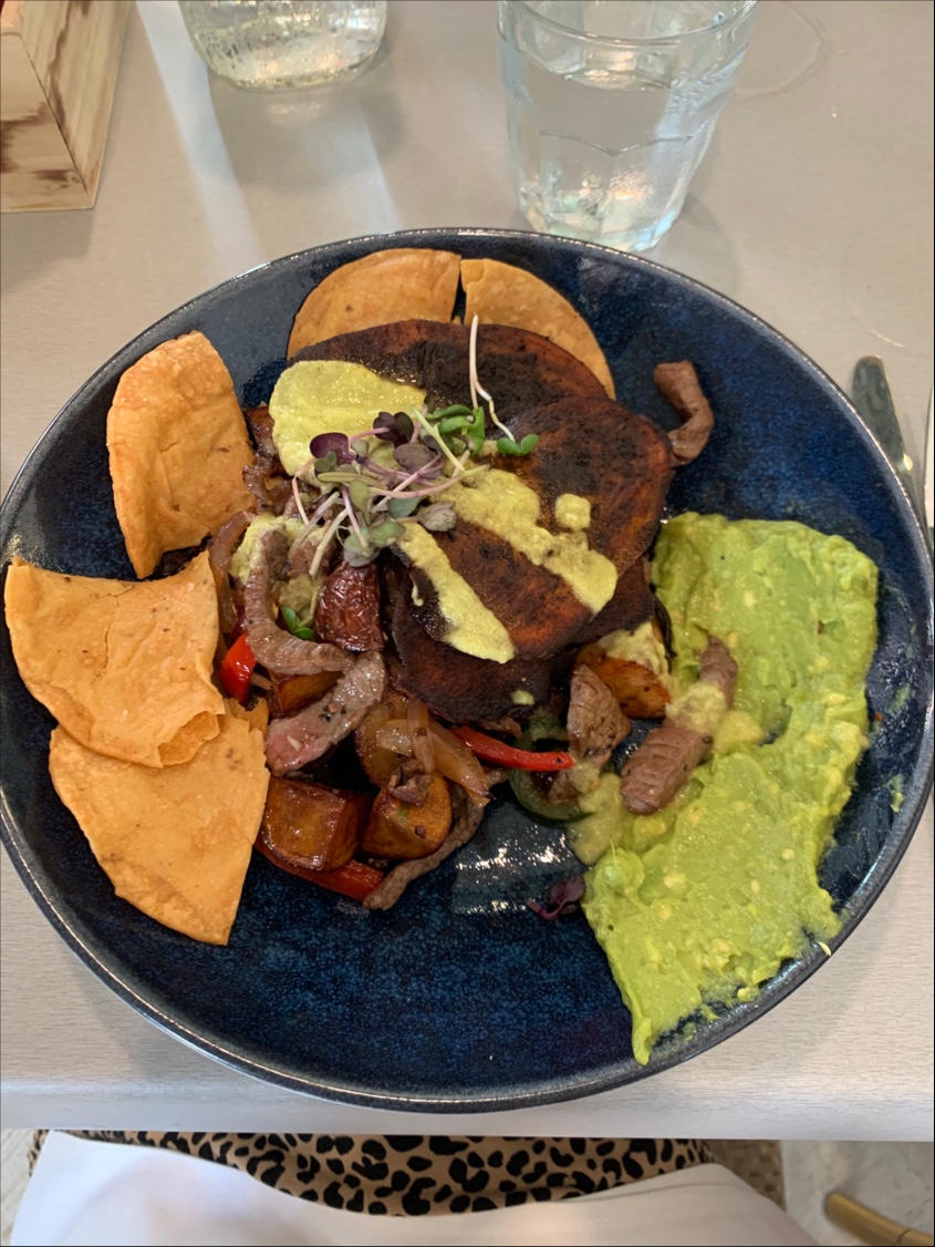 I, myself, had the Chilaquiles. The whole dish could use better execution. It consisted of Corn tortilla chips, black beans, chicken tossed in chipotle sauce, sunny egg, avocado, queso fresco, and cilantro lime crema. The chips were typical, black beans were tasty by themselves. The chicken was tough, maybe not fully thawed before cooking. The chipotle sauce ruined the dish. It had potential, however, you see this often in many places with high turnover.