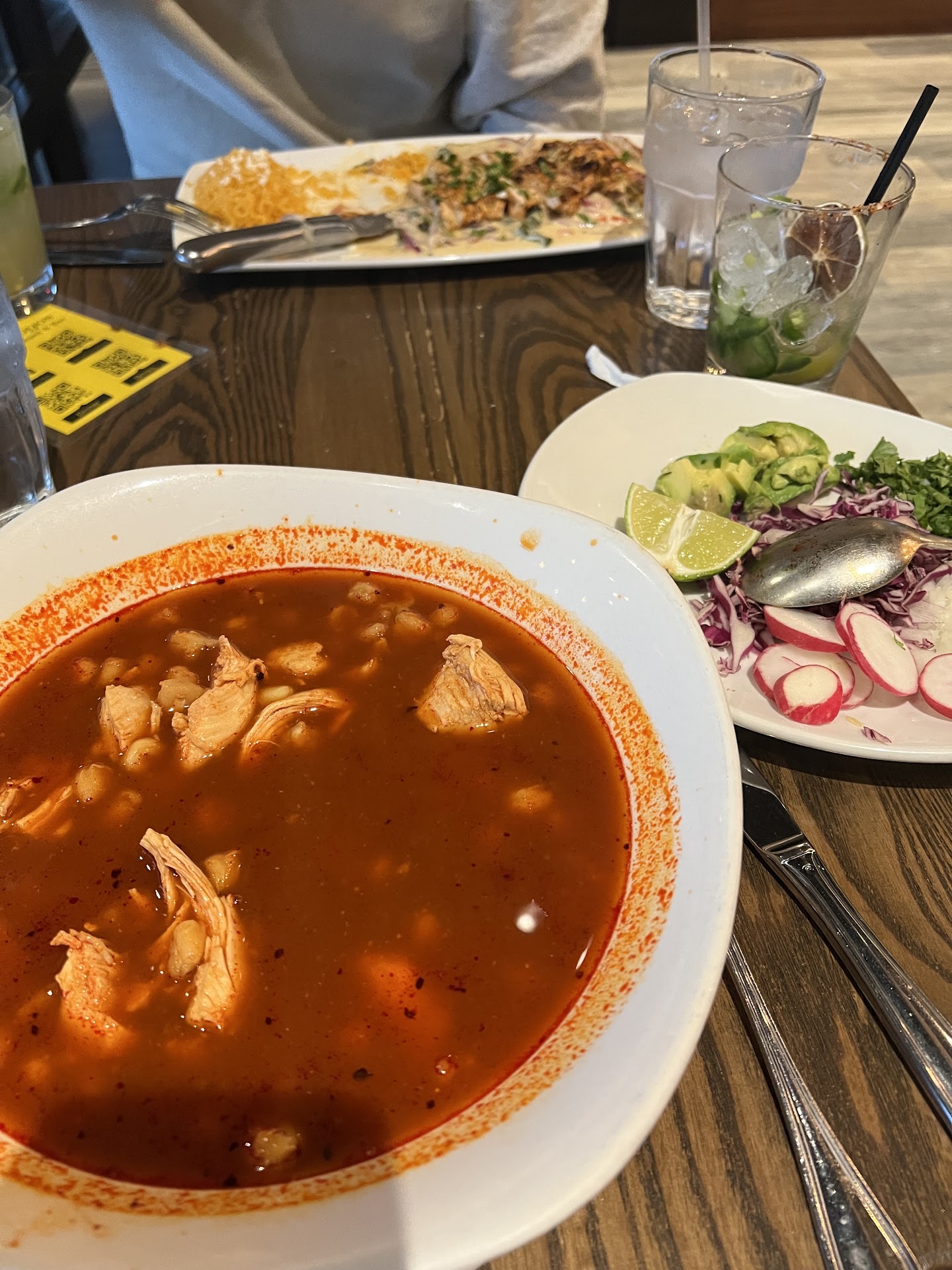Read moreIn this review I will compare to your traditional Mexican restaurant- Definitely ~upscale Mexican food which was super tasty, fresh and service was great. Definitely a bit pricey. Drink selection and mixes were awesome. You won’t find the portions or as many options as your traditional place. We didn’t have a reservation on a Friday at 6:30 and got right in, but if you don’t want to take any chances, I’d probably make one on the weekend for dinner. It’s a dealbreaker for me when upscale Mexican places charge for chips & salsa. This place did not. My pozole was super great & there was tons leftover. They boxed it for me in soup containers which I thought was impressive because I thought they would put it in a box and I wouldn’t get the broth. Alas, very good, but nothing stand out that makes me think the prices are warranted. I would not purposely choose this place over a traditional joint, but I think it depends on the experience you want. They have weather permitting outdoor seating, bar seating & then restaurant. I wouldn’t necessarily recommend this place to someone but wouldn’t tell them not to go if that...