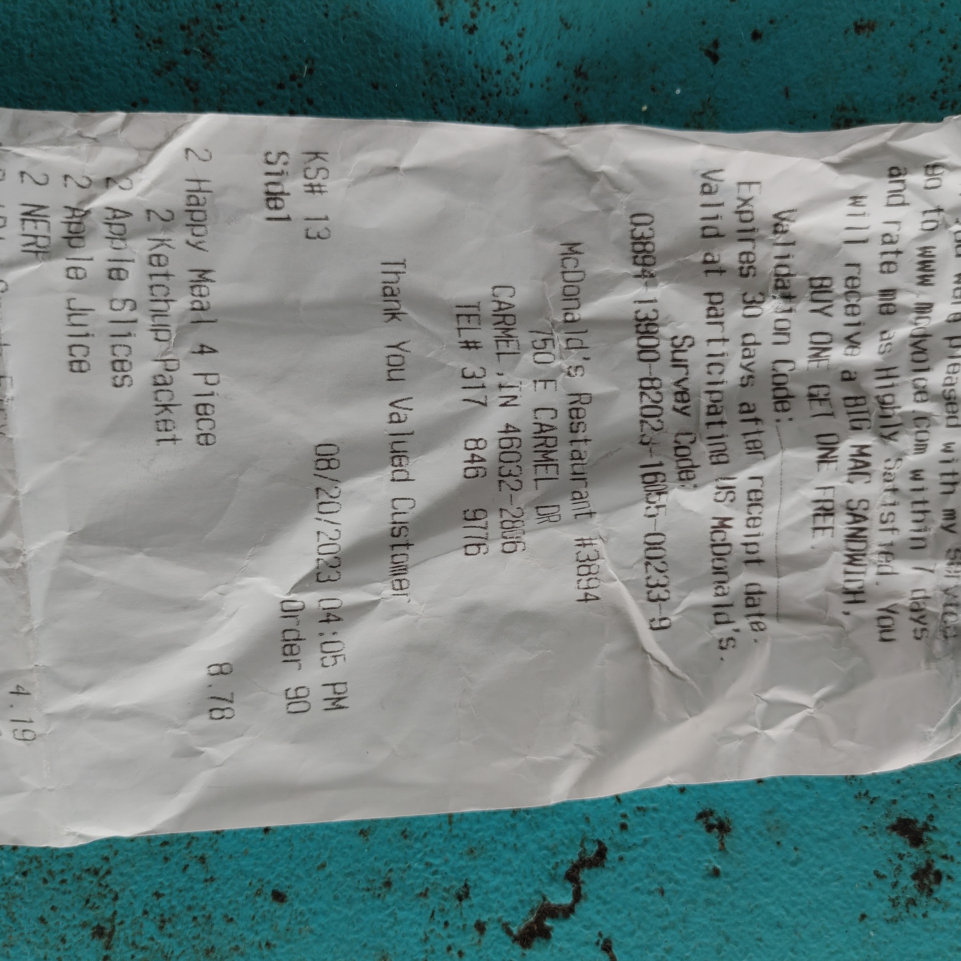 I paid at the drive thru at 4:05pm today, 8/20/23. I ordered 2 Happy Meals, 1 Quarter Pounder Meal, and 1 Peanut Butter Crunch McFlurry. I was told to pull up to the drive thru waiting area and I did. There was one car already waiting. I sat in my car with my kids waiting and I seen the guy in the car in front of me get out and go inside. Its now 4:25pm. He gets his order and suggested I go inside, because he said they forgot about his order.