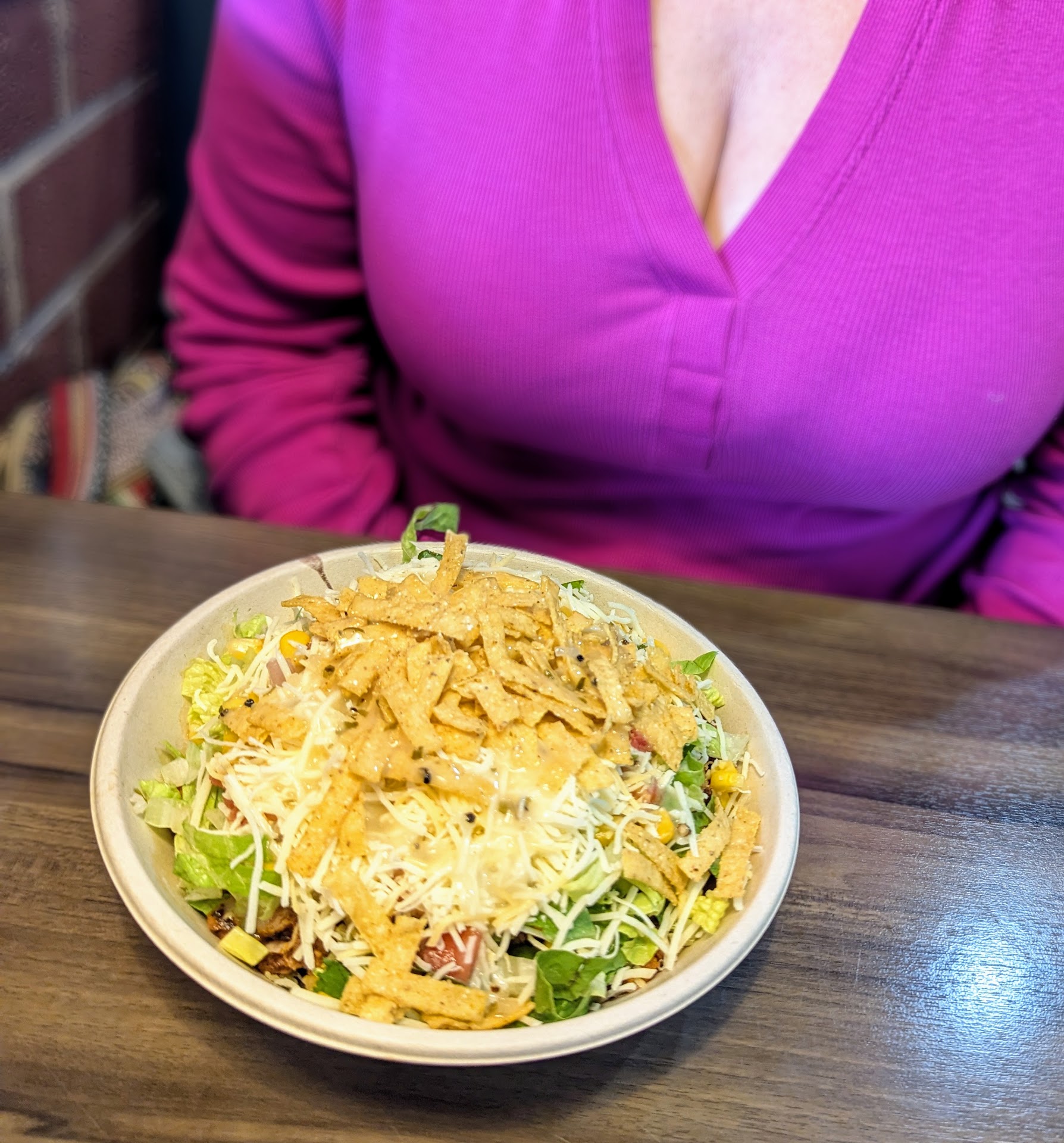 i was was craving Mexican food, so i decided to visit the local Qdoba restaurant. i entered the restaurant and was greeted by a woman with pink hair who seemed friendly enough.