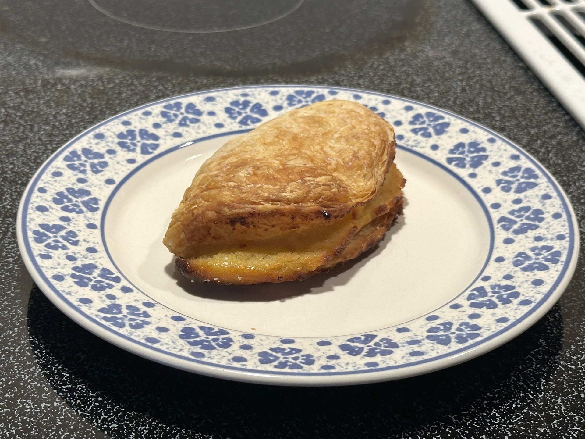 On a whim I decided to try to track down this Italian pastry. My wife and I were watching Andrew Zimmern’s “Delicious Destinations” last night about Naples. We stumbled across a segment that featured rolling out and doubling dough to make a thousand layers. Then they added semolina to ricotta cheese and bits of candied fruit. My wife exclaimed that it looked delicious and wished she could try some. So the next day, I got on the phone to see if I could find a bakery that carried this authentic pastry. I knew I wouldn’t be able to pick some up at my local grocery store. That’s when I spoke to the owner of this place. She was hesitant because she knew how labor intensive the pastry would be. So she let me talk to her pastry chef. I told her the story, and luckily she said she had time to make a few. She also told me they were sometimes called, lobster tails, but here were more like clam shells. Since that’s how they looked on television, it was what I was expecting. I only ordered 4, one for each of my family, and they took my credit card information over the phone which I totally understand. I would hate to have them go through this intense process only to have the pastry go to waste by some inconsiderate customer. So I gladly paid the $5.99 each over the phone! I gave them a time when I would be by to pick them up, but I was a little early. The chef had timed it out that they would come out of the oven just as I arrived. So I had to wait a few minutes while they finished cooking. I took them home immediately and they were still warm.