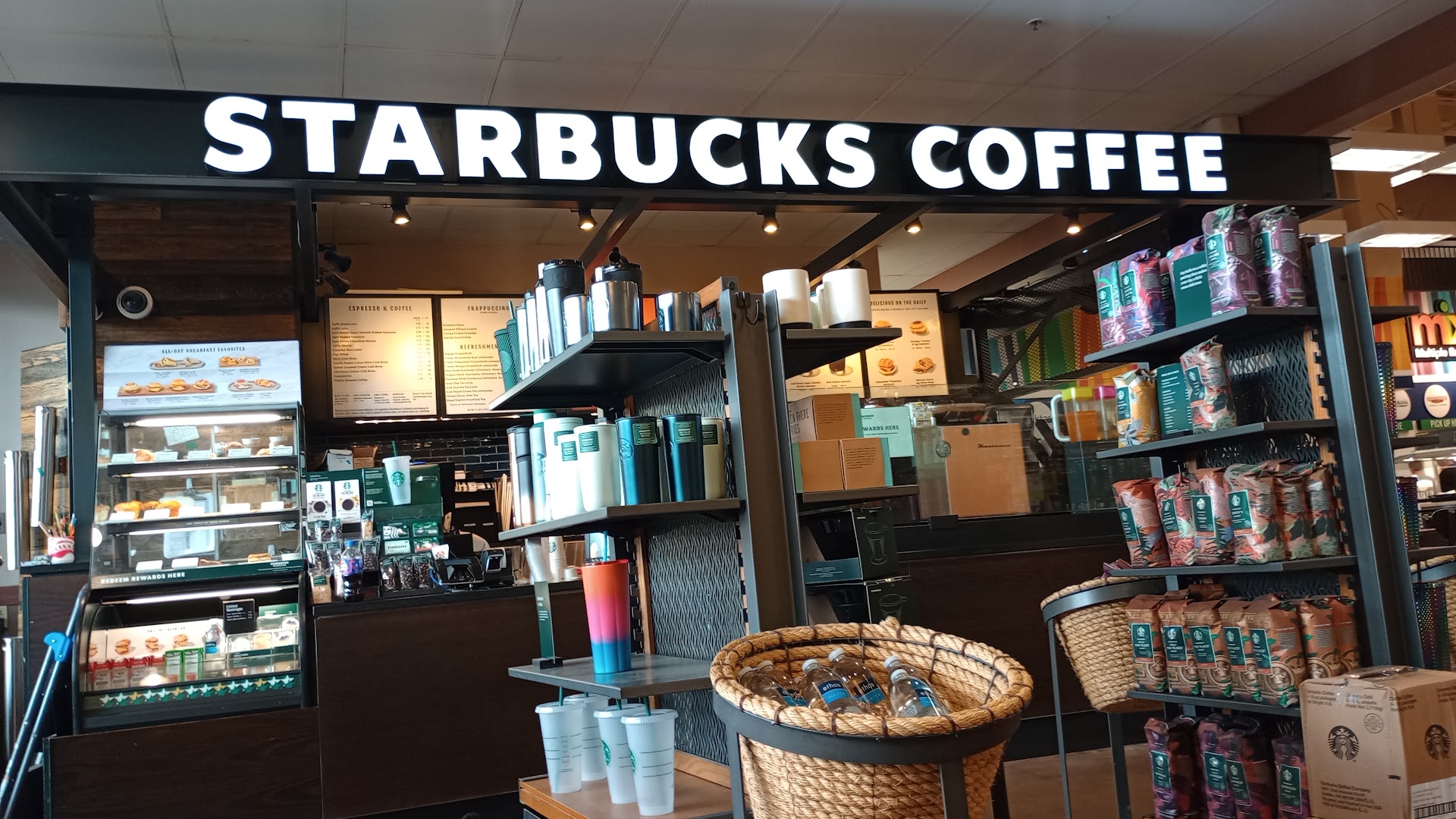 Was not greeted or acknowledged upon approach. The one girl working was wearing Kroger gear and was rushing around like she was on fire to get one coffee out to the guest before me. After completing their order she apologized and stated she was "just filling in". I ordered a pumpkin chai latte with two shots of espresso and a pumpkin loaf with a side of butter. I was told there was "no butter " and given a chai no Expresso and an apple croissant. I let her know I was going to eat the croissant but was charged for the Expresso She admitted to forgetting it and apologized. It is what it is. The actual Starbucks gal arrived at 11:49am while I was finishing but...you should honestly make sure a trained attendant is there before opening. This "show must go on" mentality is not doing the...