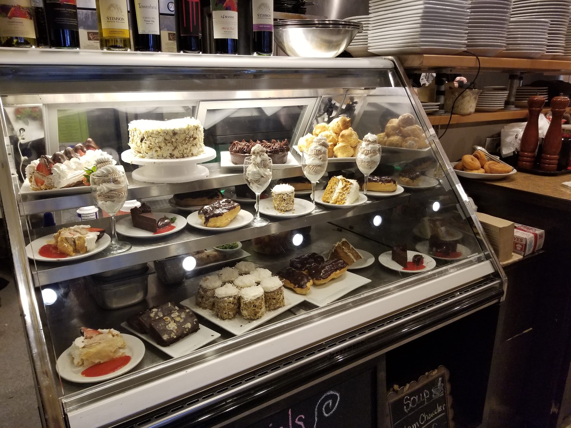 starters: Cajun calamari, Thai crab cakes, and fried mozzarella are highly recommend salad: Cafe Cobb, Caesar salad, shrimp-avocado salad, and Caprese plate are must try. dinner: we normally go with chef special but on the regular dinner selections, we like Jerk chicken, Tolt burger, Alaskan halibut cheeks, and grilled delmonico. -lunch: try any of one their famous standing sandwiches. Such as: Cafe club, hit pastrami sandwich, roasted dip. Also, open ribeye sandwich is also amazing. breakfast (they serve breakfast 6 days a week): well, all I can say everything is great on the breakfast menu. Now...(drum roll) dessert, yum! Chef Don who makes everything from scratch, I like everything especially the fresh fruit pies, but my best suggestion is stop by the dessert showcase and you will find what you like.