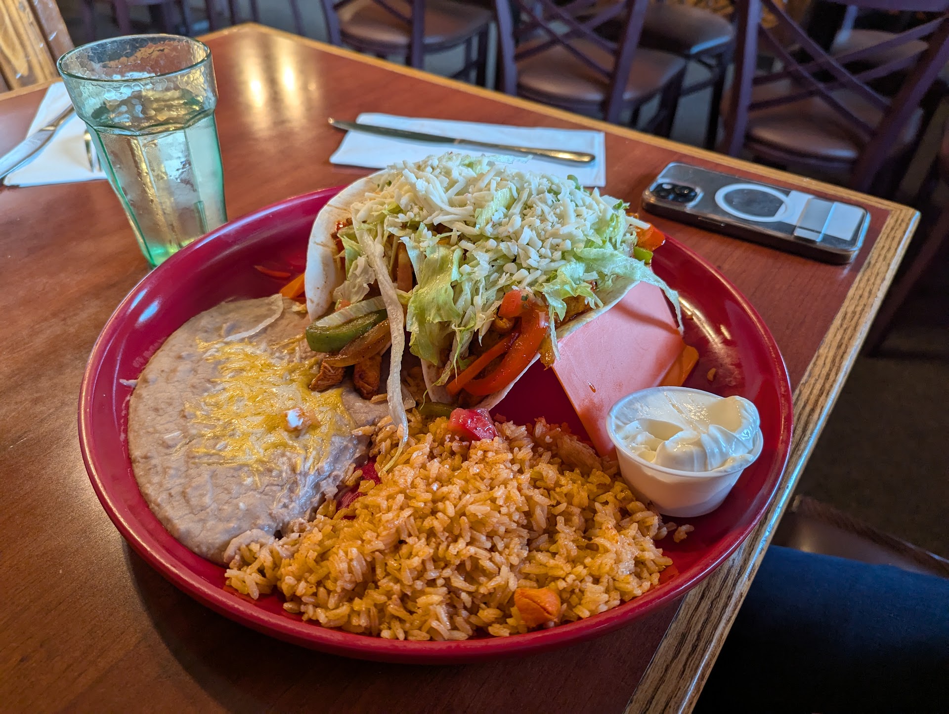 Read moreIdk where to start I hate writing bad reviews... The chips were like warmed store bought chips Took 20mins to get our water Took 40 mins to get our food my no name was burnt with loads of sour cream and little dallop of guac BFs steak fajitas were tough came on a sizzling plate but cold and oddly tasted sweet and had a weird tang taste. Peppers were halfway cut and barely fried like half a pepper ripped through but not totally so it was still half a pepper. His sides that came with it were cold, lettuce shreds looked like it had sat out on the counter for hours, the condiment sides were just thrown on a random plate nothing of his platters were matching like they usually are and again half the tiny plate was sour cream with a tiny bit of pica and a tiny bit of guac for 25.99! Took another 30 mins to get our check. The worst part was he woke up in the middle of the night with food poisoning (probably the weird tang steak they were trying to cover with loads of sauce) Carnation local grew up here and unfortunately will never eat...