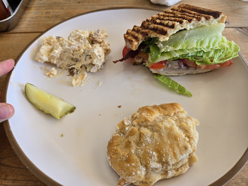 Read moreHigh quality & delicious food at very reasonable prices. Great portion sizes! (my pictures are of only half because my husband and I split a sandwich.) We got the turkey bacon sandwich toasted and the "baked potato" potato salad. Both items were VERY good!