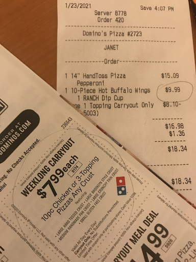 Ā Ā Ā Read moreBad experience when I placed my order by phone ... I wanted to request the promotion of $ 14.99 !! And the person on the phone told me that they no longer had that promotion ... when I arrived at the place to pick up my order ... they have the brochure with the special I wanted at the beginning ... and they couldn't cancel or fix my order because the pizza was ready š ...when I pay for my order the lady does not give me my receipt I asked her and she only gives me the amount I pay ... I just want to tell everyone to be careful when pay .. they do not give a receipt with the details and they do not put the price of the promotion ...look at my receipt and the...