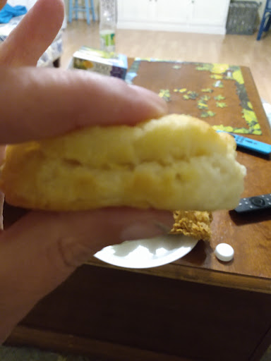 During the order, I request jelly for my biscuits and hot sauce. This order was repeated several times. Drive up to the window, only to pay and be told to pull forward and wait (they always do this with family meals). A gentleman comes to the car window looking glum. He’s the cook. He gives us chicken options because they are out of wings. We make our selections and wait.