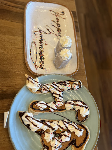 First off the space is open and bright and clean. It's a fun and casual environment. They have an enclosed patio space that is dog friendly. The service I've had here has always been wonderful. The bartenders and servers are always friendly and seem to go above and beyond whenever possible. The drinks I've had have been great. I tried a Reese's coffee cocktail that was delicious. And I had a strawberry pineapple mimosa that was very good. I've been eyeing the shots, particularly the bday one. They have a lot of fun drinks to choose from. My issue here is with the food. I've eaten here twice now and both times the food was below average. My first food experience was with their hibachi which I would not call hibachi at all. It's more of a veggie bowl with white rice. I asked for no mushrooms in mine. (It's an allergy.) I ordered it with the steak cooked med rare and shrimp. When it came out I noticed the onions were missing and there were mushrooms in it. The zucchini was raw. The bartender was pretty busy and I didn't want to bother her so I ended up picking the mushrooms out. They were big enough that I wasn't worried I might end up eating one. I just really hate to waste food. So after taking the mushrooms out and the onions being forgotten I had a bowl of white rice with raw zucchini and then my proteins. The bartender never checked on me until I was done and asking for a box. She looked at me quizzically when she saw my side plate of mushrooms. I told her they did no onion instead of no mushrooms. It was fine tho. She was super apologetic. The steak was over cooked and under seasoned and may have been cut wrong because it was very tough and chewy. The shrimp was super salty to where it was on the line of inedible. Again, I don't like to waste food so I brought it home so I could try and fix it. The next day I added onion to my leftovers and was able to cook the zucchini. It was better. The next time I went I ordered the shrimp and grits. The grits were great! The shrimp again was super salty but right on the line so some bites were saltier than others. I was also able to try their pancakes and those were pretty delicious so that's something I'd order in the future. Or maybe a burger. I would go here again mainly because of the service and my curiosity about some of the drinks. Food seems to be hit or miss. I do know they are still pretty new so maybe after some time some of these issues will iron out. They do have a calendar with fun specials throughout the month but for some reason they don’t post it on any of their social media. So I guess if you want to see it you have...