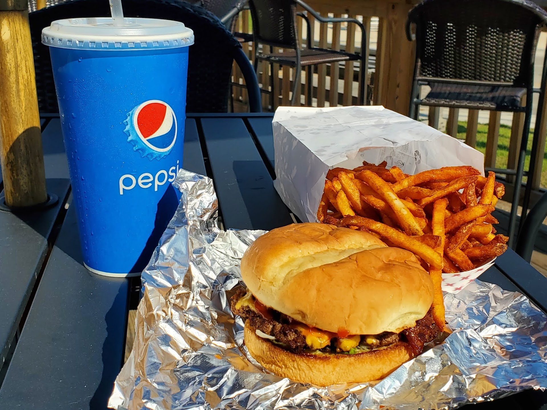 Ā Ā Ā Read moreI'm not sure if our families meal was a fluke or what. We visited yesterday late afternoon. But the burgers we got tasted like the burgers we would get if we went to our uncle Jims home for his cookout where he smashes the meat together cooks it, doesn't season it throws it on a bun with tomato, lettuce, mayo and he calls it the best burger he's ever had. All our burgers were bland. No flavor, the buns must have just come out of the fridge or something since they were all really cold. Which was weird for us biting into a cold bun and then the warm burger. The fries in our opinion were heavily over seasoned while the $8 onion rings were not seasoned at all. We had a family of 5, 3 kids 2 adults and spent $75ish & $86 (after tip). It is kind of dumb having everything al carte but I guess for the owners pocket its a good choice. So maybe since everything is al carte we must have skipped the part where we pay $5 more for the cook to add seasoning to the burger patties. I'm kinda of surprised this place has as many reviews as it does. I'll probably give a 2nd chance in the future but I would have to pay for just a burger to see if the this time was a fluke. The outside patio where we ate is nice. The facility was clean as well. The staff at the front counter were very helpful &...