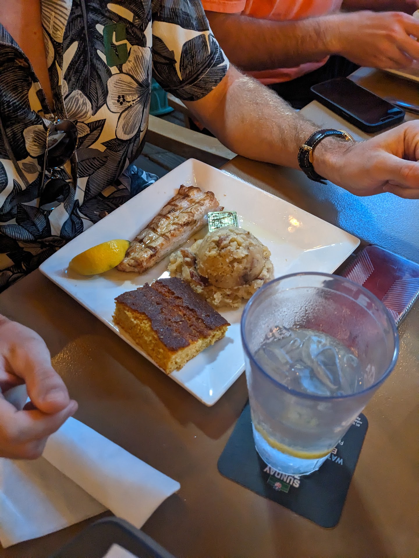 Now let’s talk about the food. I got the crab legs, and let me just say — if butter is wrong, I don’t wanna be right. Cracked those bad boys open like I was born on a shrimp boat. My wife ordered the shrimp and grits, and I swear I saw her soul leave her body for a second — just floated up in pure Southern joy and came back down with a new appreciation for seafood.