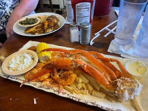 Good tasting seafood. NOTE that after NOV 1 (off season) you can park on the street for free. Otherwise you will pay $17 to park for 2 hours in the nearby public parking lot which is nearest the restaurant. We went for lunch on a Saturday and got there as it just opened at 1130 - not busy. Good service, great sweet tea, and plenty of TVs on sporting events if you want to watch a game. We started off with the onion ring appetizer which was great. These are fresh hand cut and battered, not the standard industrialized ones you get most places. If you dont come for anything else - get the rings. Lots of variety on the menu but they do not stray too far from seafood which you would expect with the ocean waves lapping in just outside. I got the fried platter with flounder, fries, cole slaw, hushpuppies, and it came with half a cob of corn - a nice touch, all done well. It was so much I had to get a box to take some home. My wife got a nice salad topped with shrimp - also nice with fresh ingredients. They have frog legs on the menu if you want to give them a try but also crab legs, sandwiches, chicken, beef, and a vegetable plate. Very pleased with the food and the service. I would say that the prices are a smidgen higher than inland seafood places, but it is "at the beach" and we enjoyed the visit. Lots of little shops around if you want to linger and browse and...