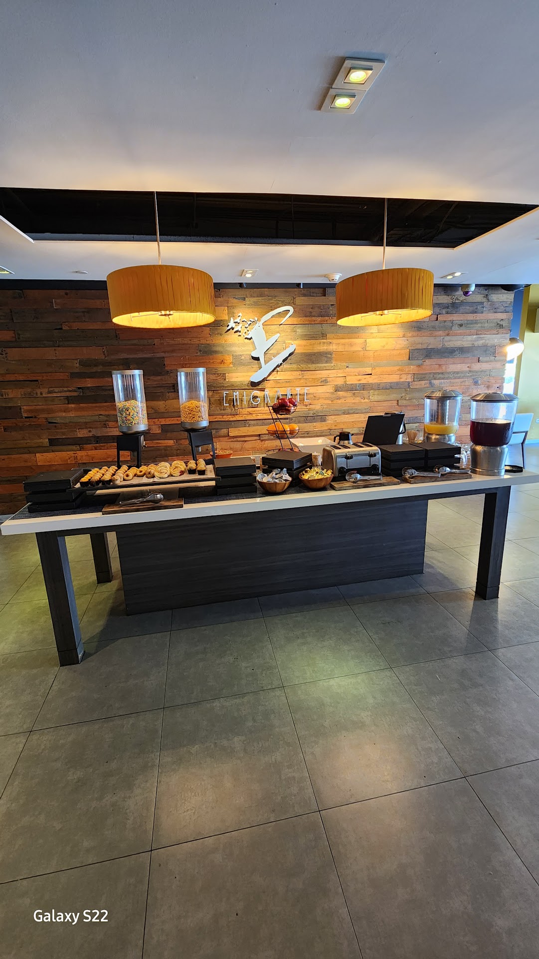 Read moreI bought their breakfast and immediately regretted it. Total waste of money; all of the food was stale. The eggs were room temperature and stiff, the meats were overcooked and stale, the potatoes were hard & stale, the waffle was cool & stale, the little powdered donut stale. The only fresh items I had were the toast, juice, & coffee. Though the staff was great, the food was extremely overpriced and not at all worth the cost ($20). I regret not walking next door to Burger King....