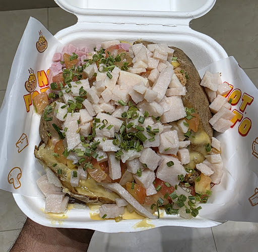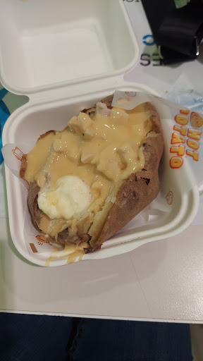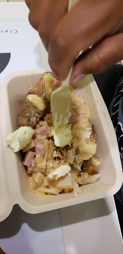 Pedí una papa que estaba en especial el día de hoy ( vegetales) , a esa le añadí un topping extra que fue el jamón adicional a eso pedí agua y cuando la chica me cobra el total fueron $15.98 dije tal vez es que es grande y bastante porción..pero sorpresa me lleve al ver la papa que era solo la cáscara y los ingredientes era poquitos todo era un emplegoste de queso cubriendo para que uno no se diera cuenta, cuando miro el recibo me había cobrado todo exta osea cada uno de los ingredientes, le reclamo a la cajera y me dijo que eso era desglosado así y que si quería más papá tenía q pagar una extra, le enseñe qué era cáscara cubierta de queso y no le importo.. No lo recomiendo mejor salía...