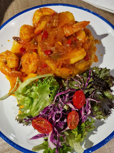 Terrible experience. Ordered the criole camaron mofongo. It was hard as rock. We had to slice it with a serrated knife and it was just so hard and starchy that we just ate the shrimp instead. Imagine 2 people sharing a mofongo and not even half of it was consumed. The shrimp on it was pretty ok until my husband had food poisoning that night from the shrimp which ruined the rest of our trip because our plan was to eat our way through san juan before we leave. Told the hotel's front desk about the issue and they said the food is not good. Well, if it's not good, why have it in the hotel for your guests? Funny thing is when the waiter asked us how our food was that night, before we billed out, we didn't give a response and he basically said, "I know, our food is just ok". Wow, even the staff said so.