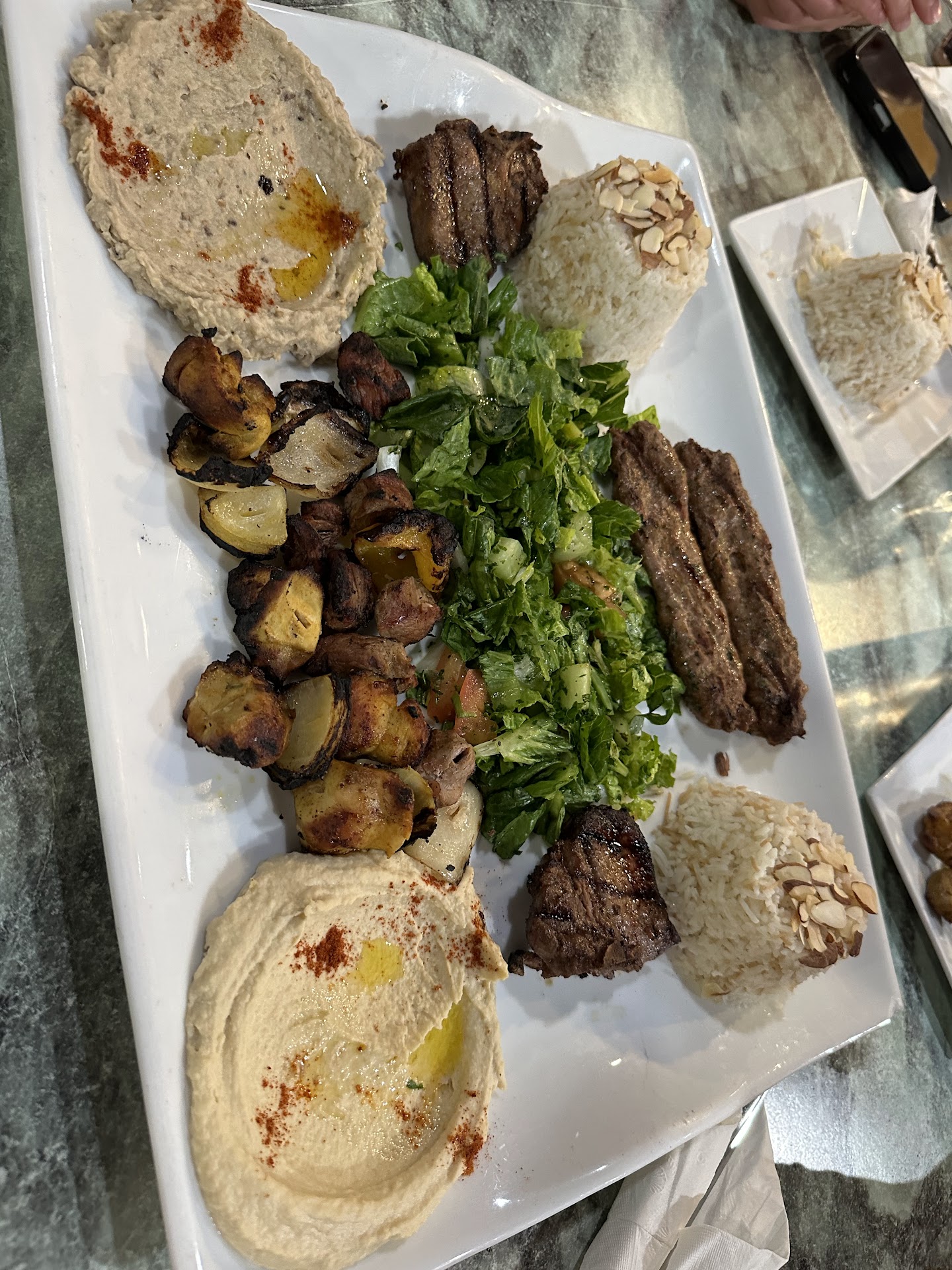 For halal eaters: only the lamb is halal. Typical Arab run restaurant. They're passing off this food to non Arabs who think it's good. It's not. I wanted them to be good, this place was literally recommended to me by a local Muslim at a mosque whom I asked where there is any halal food. If a business only has partial halal I always skip it, but since this is Puerto Rico I had to try it (read the end of the review for why). Lamb kebabs were dry, falafel was tasteless, the garlic sauce was RANCID, literally I asked my wife what's wrong with this and she said the garlic had gone rancid in the sauce so they're using old ingredients or they are making the sauce and literally holding onto it until they use it all. The bread was fine but they probably bought it from a store. The salad was fine but that's not saying much at all. The hummus was tasteless. Surprisingly, the baba ganoush wasn't terrible. If the hummus was 2/10 the baba ganoush shockingly 4/10, which is the most surprising thing because it is difficult to make and typically is my way of figuring out if a restaurant is doing anything right. It's so hard to make good that if a restaurant does it, it's almost a guarantee that everything else is good. If I had tried just the baba ganoush, I would have said, it's not the worst thing, I'll try the other stuff. Except all of the other stuff was just tasteless, dry, old, rancid, overall not worth it. I gave them $75 and I regret it. I had a better experience just ordering vegetarian pizzas and pastas from random restaurants rather than go out of my way for this. This is what makes me sad about Muslim businesses. I'm on vacation and decide to try something halal and not only is it disappointing it's just disgusting. Next time I'll stick to restaurants that only serve all halal meat. However I will say since it's Puerto Rico, it's nearly impossible to get halal meat outside of lamb. There are ZERO halal meat stores, and the Muslims that live here either slaughter their own animals or don't eat halal. Just word to the wise for...