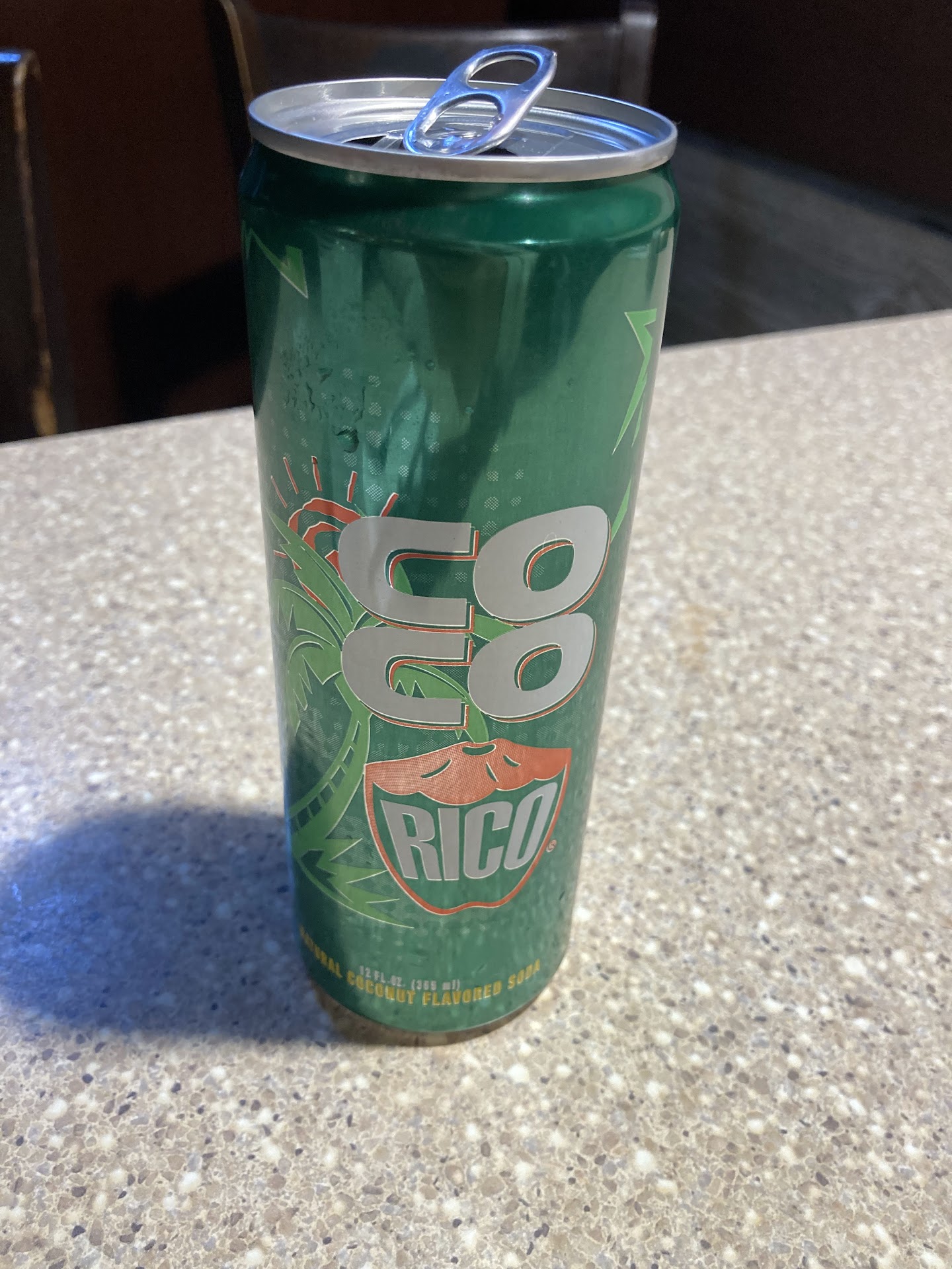 We dined inside at a table. The place wasnât that big. I enjoyed their water, which was complimentary, and I ordered a Coco Rico. The Coco Rico came in a can and it was very refreshing! I loved the unique taste.