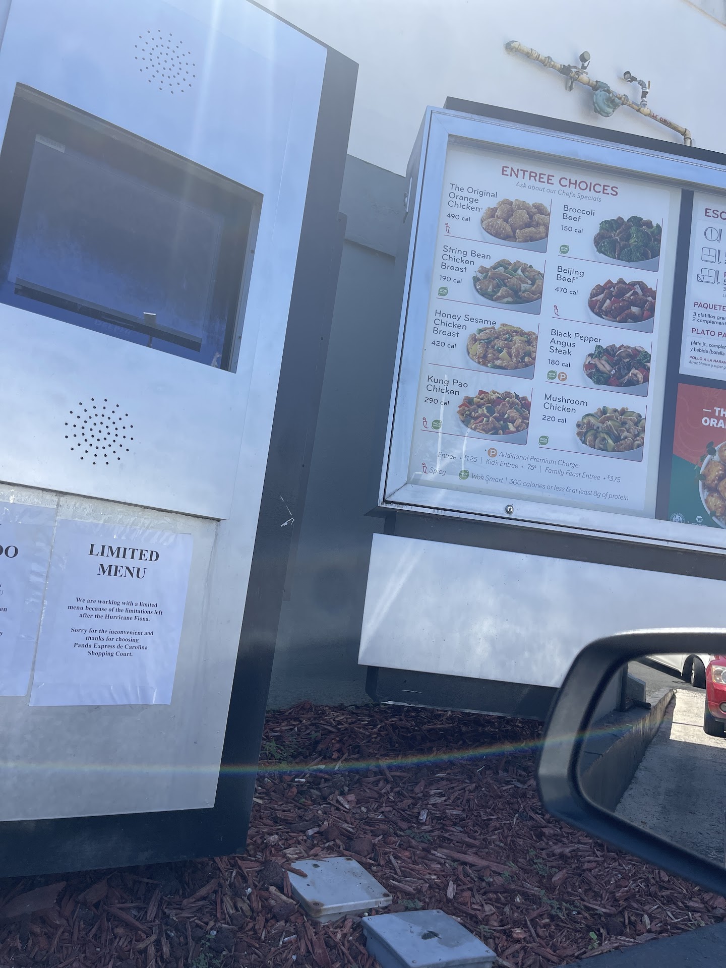 Read moreI came by at 8:20pm by the drive thru, and they were short on food so the menu was limited. The cashiers told me that a all the meat portion that they had was only the kids portion. Then I asked them if theyâre going to charge me the regular portion, but giving me the kids meat portion and they told me that they were going to charge me anyways the regular portion, regardless that they were giving only the kids small portion. Be aware that this panda express restaurant is charging you something that they...