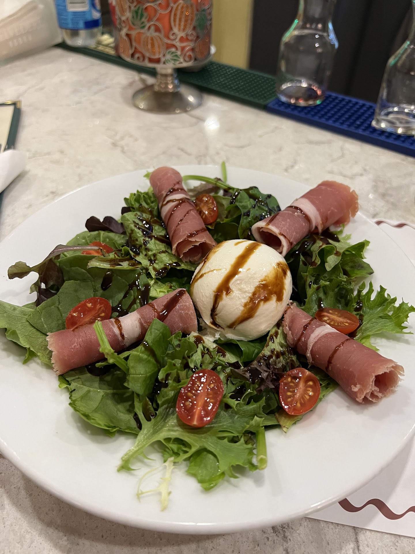 Our waiter took our drink and apetizer order, and said that he would be right back to take our order for our main dishes. Our appetizer came out quickly, as did our wine (but not the water we ordered), and both were delicious, but he never came back to take our order for our mains. Eventually we flagged him down and managed to order (and asked again for water). 30 minutes later, he came by our table and asked "have you ordered your mains yet?". We said "yes", but did not receive our main dishes until 45 minutes after that, and did not see our waiter again until the very end (someone else brought out the food when it was eventually ready).