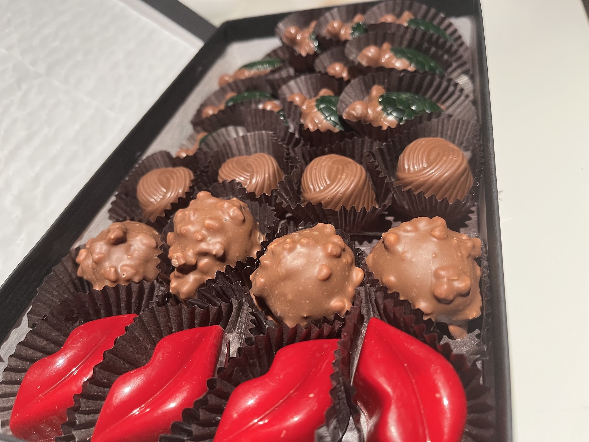 The woman who helped me was extremely nice and friendly. I got a little bit of everything dark. It all looked nice but the bag packaging isnât great as the chocolates go all over the place.