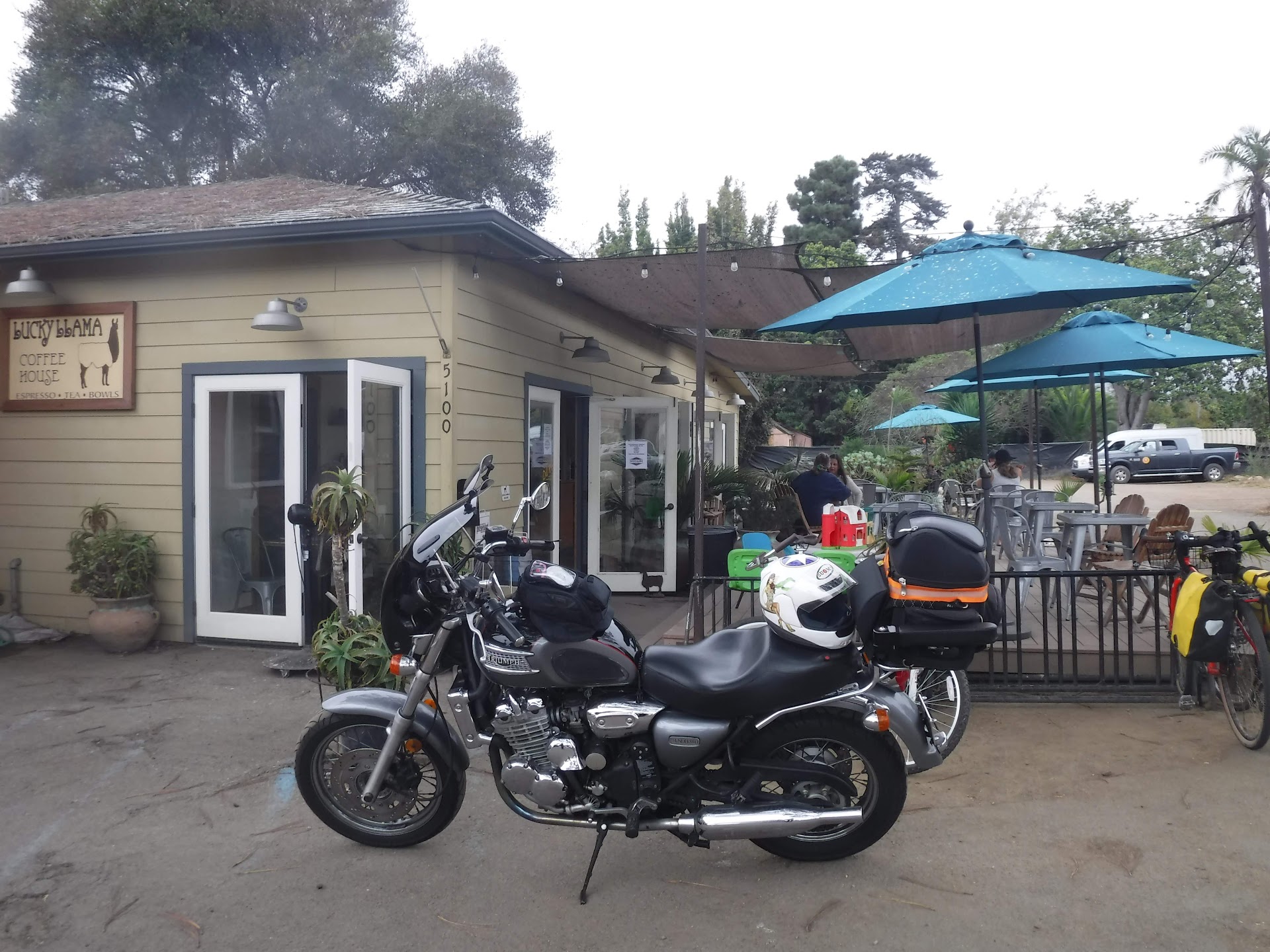 You can say a tree lead me to discover Lucky Llama Coffee in Carpinteria, CA. The tree in particular is the largest Torrey Pine tree in the world. That beauty is roughly 125 feet tall and girthy at 20.5 inch circumference. As I was soaking in the shower but of the majestic marvel, I noticed Lucky Llama Coffee. The building is set a bit back from the tree. And luvin the stinky cute name and signage.