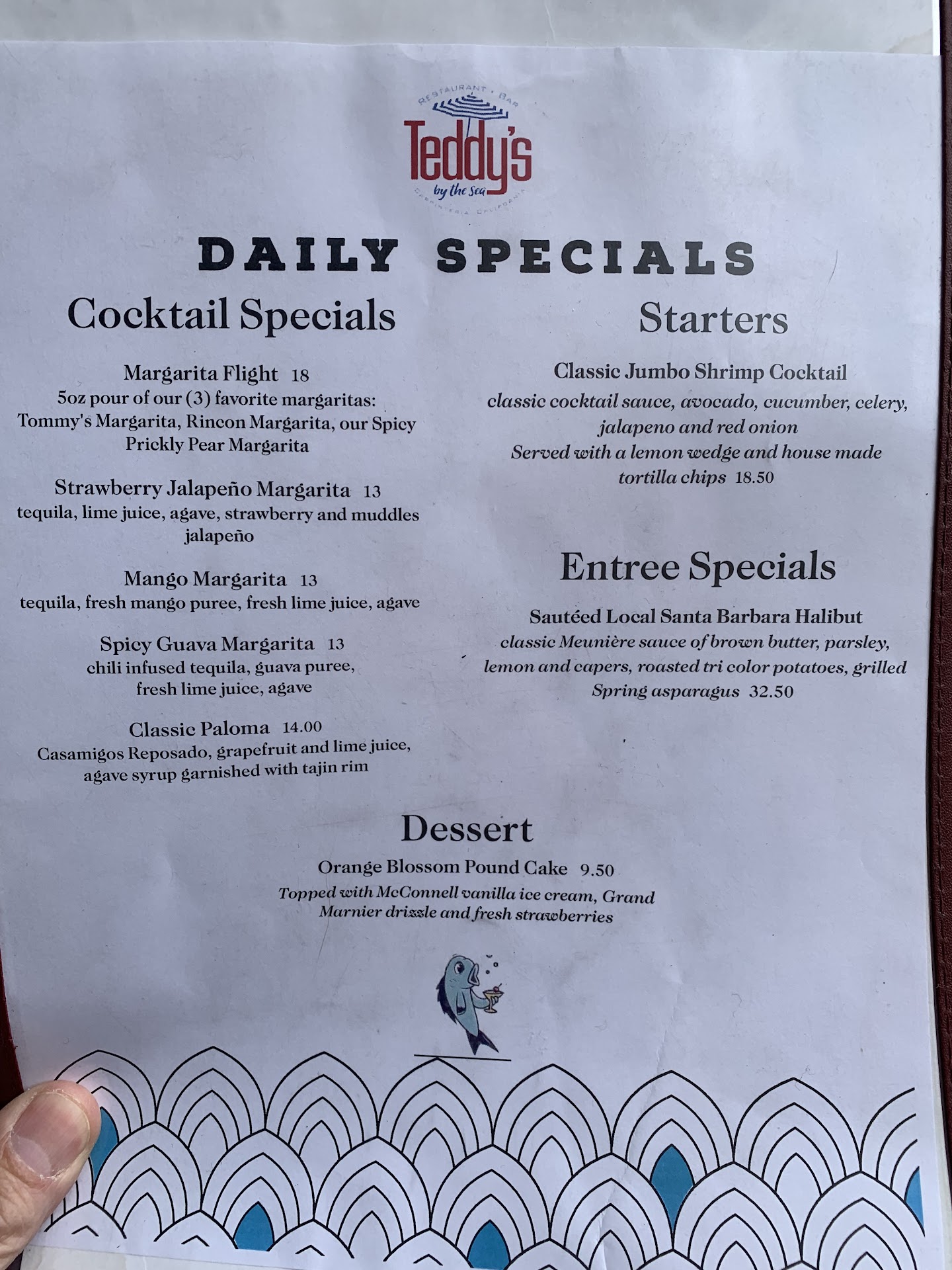 Read moreWe LOVE everything about our dinning experiences at this charming spot!! We live in LA and have stopped here before because we thoroughly enjoy the atmosphere on the outdoor patio, the service and the food. These are all the aspects of what makes this place so special. Yesterday we drove in for an early dinner on the patio because we knew it would be a fabulous book end to a perfect day spent together. We were sat quickly at a fantastic table by Pedro the manager, and even though we weren't greeted by our server for several minutes we were quickly redeemed by what I am about to share which was a wonderful dining experience. We ordered the calamari and dinner rolls for appetizers and I chose the salmon on a cedar plank that came with smashed (not mashed) potatoes with course salt and green beans and my date ordered the fried chicken with mashed potatoes and green beans. Oh my goodness, the salmon was honestly one of the most delicious items I've ever eaten!! I've owned a restaurant so I know good food and the importance of a good presentation on a dish and let me tell you, I was very very impressed with every mouth-watering bite!! I was told that the fried chicken was excellent as well, however my dinner date said he's going to be sure to order the salmon next time. We didn't order any cocktails but everyone around us seemed to be thoroughly enjoying them, especially the margaritas. We ended our meal with the key lime pie which was recommended by Pedro, he was correct, it was absolutely delicious!! If you're ever in Carpinteria you must stop here and even if you're not in the area it's absolutely worth the...