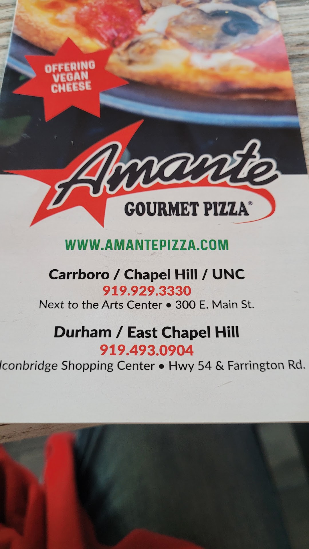 Read moreVisited Carrboro last night to promote and conduct an event last night. During a break (we had one hour), I and an another film producer visited Amante for food and sodas (about 8:30PM). I am white--my producer is black. We ordered a pizza, and paid with 28% gratuity when we ordered. After 25 minutes and me asking, the busboy informed us that they had 'messed up' our pizza and another one would be ready in minutes. After 30 minutes, I had to knock on the kitchen window to remind them we were waiting. The bus boy brought out the pizza. No plates, silverware and 'enjoy'. The pizza was not even sliced--and was so hot you could not handle it. And I guess the table was a good enough plate. I asked for a too-go box. The bus boy brought the smallest one they have for an entire pizza. It was all I could do to put it in the box--much less carry it. I went back inside and complained directly to the owner. He said I was being 'rude' although he had my pizza, money and tip. I told him I was going to expose him on social media--and he said to go ahead. He has my money and the pizza. He's good. I will never spend another dime here, and I recommend you...