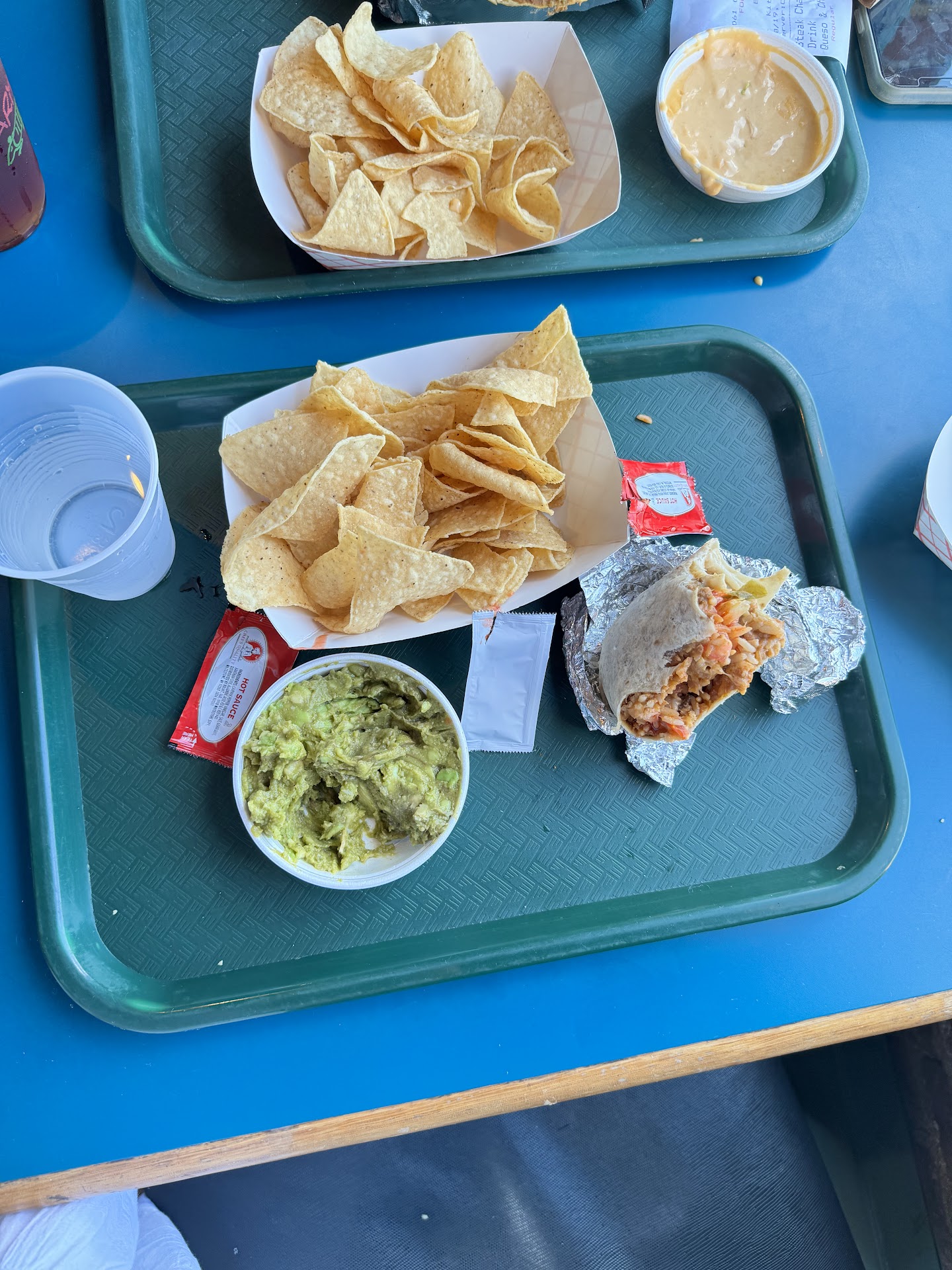 When we get home we find the order was still missing an item and the items we did get, were 2/3 full, the bags of chips were less than half full and we ran out with half the salsa and queso left.