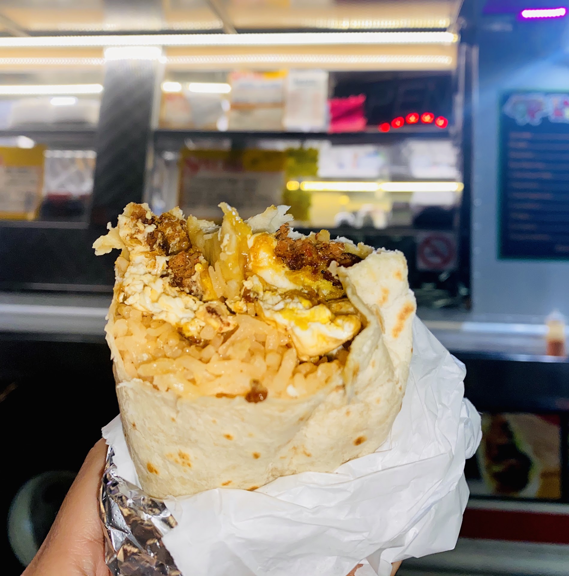 I cannot talk enough about the #5 breakfast burrito which contains chorizo (Mexican sausage), bacon, eggs š³, rice š, and beans. Get that green sauce too. Ughh. š¤¤š¤¤