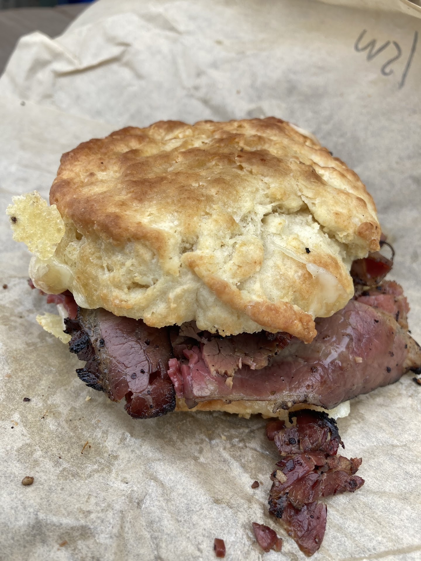 Read moreThis place is ok. I enjoy coming here for the laid back ambiance and the friendly staff but the food has never "wow'ed" me here. The first time I came I ordered the sausage, fried apple, and cheddar biscuit. The biscuit overwhelmed the flavor of the entire sandwich, as biscuits tend to do. The biscuits alone are pretty tasty but I dont think their sandwich pairings are bold enough to be properly paired (i.e spicy anything or a sweet ham biscuit). I know a lot of people may disagree with me on that- yes, I am hard to please when it comes to biscuit sandwiches. So I've also ordered a bacon egg and cheese on white. Tastes like how it would if I made it at home. Which is fine, just not for $6 (about $8/$9 if you include a beverage). Recently I went and ordered the pastrami on rye (also $6). Quite tasty pastrami, a little dry but good flavor, but the sandwich was small and just kind of reminded me again of something I could make at home for cheaper. I havent tried lunch here yet, but maybe that's a better meal to get the bang for...