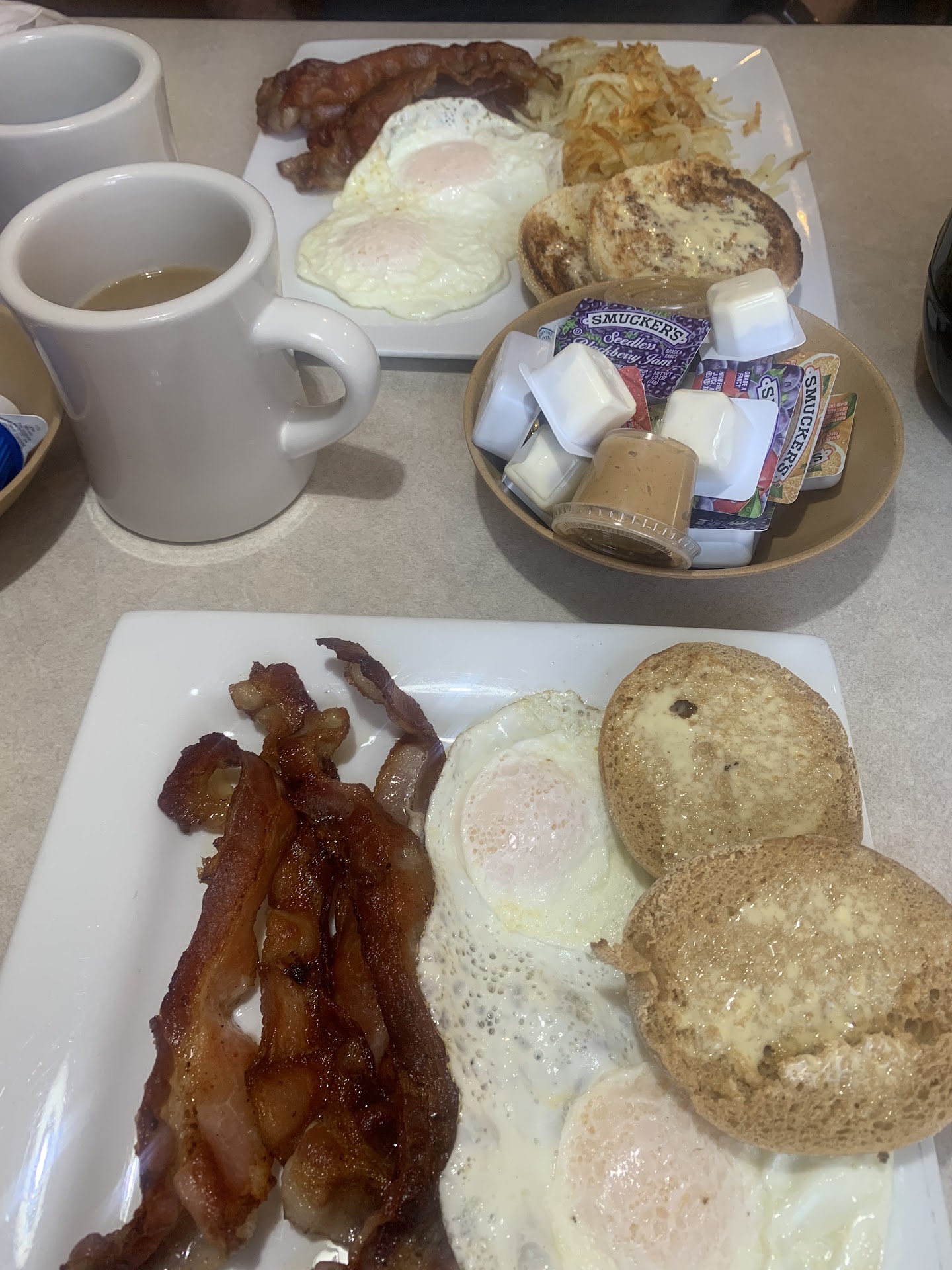 Read moreSeat yourself restaurant. Really pleasant waitress brought water (nice), and asked if we wanted coffee (of course we did!) she brought a big carafe of coffee, but only filled the cups a little more than half full saying people tell her it gets cold if she fills it all the way… I said “that’s fine as long as you come back soon” and she says “oh, I’m leaving the carafe here!” Bonus points for that and the coffee was excellent! Ordered our usual two eggs, hash browns, bacon and english muffins (first time we heard “your choice of whole wheat or white” for english muffins). Wife went with the whole wheat this time. I went with white. Food came out quickly and Tabasco soon to follow… Overall, eggs cooked perfectly. Not many hash browns, but they were crispy. Bacon was ok on thickness, but somewhat underdone on the ends. My English muffin was light and crispy, but my wife only ate one as the whole wheat muffin was dense and soggy. We’d eat here again if we can make it during the week—sorry (and confused) to hear they’re closed on weekends, which is when we usually come to...