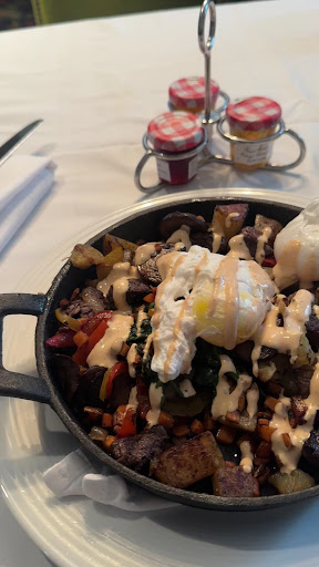 My husband and I celebrated our anniversary last night at the Bretton Arms. The staff was very friendly but for the price point there should have been more attention to details. For example empty glasses stayed on the table too long and waters weren’t filled always timely. The wine menu was extensive but overwhelming and hard to find the glasses of wine in the mix of the bottles. There was a complimentary amuse bouche. It was hot chocolate in a shot glass which really didn’t make sense or complement anything that we were eating. It was confusing to have hot chocolate in a small glass to start the meal. My husband and I split 3 courses. We started with the wild boar ravioli, the flavors were good but the meat was tough and it wasn’t really a ravioli at all. It was two slices of pasta on the top and bottom with a slow roasted wild boar dish in between. We waited over 25 minutes for the next course. Our second course was the scallops found on the main entree section. They were PERFECTLY cooked and fresh. The flavors were amazing and was by far the best dish of the night. We finished with venison which was not evenly cooked. There were many sections of the cut that were overcooked. The expectations for the restaurant was that this meal would be a fine dining experience with excellent food, but the details are expected for this to be accomplished and ultimately there were too many...