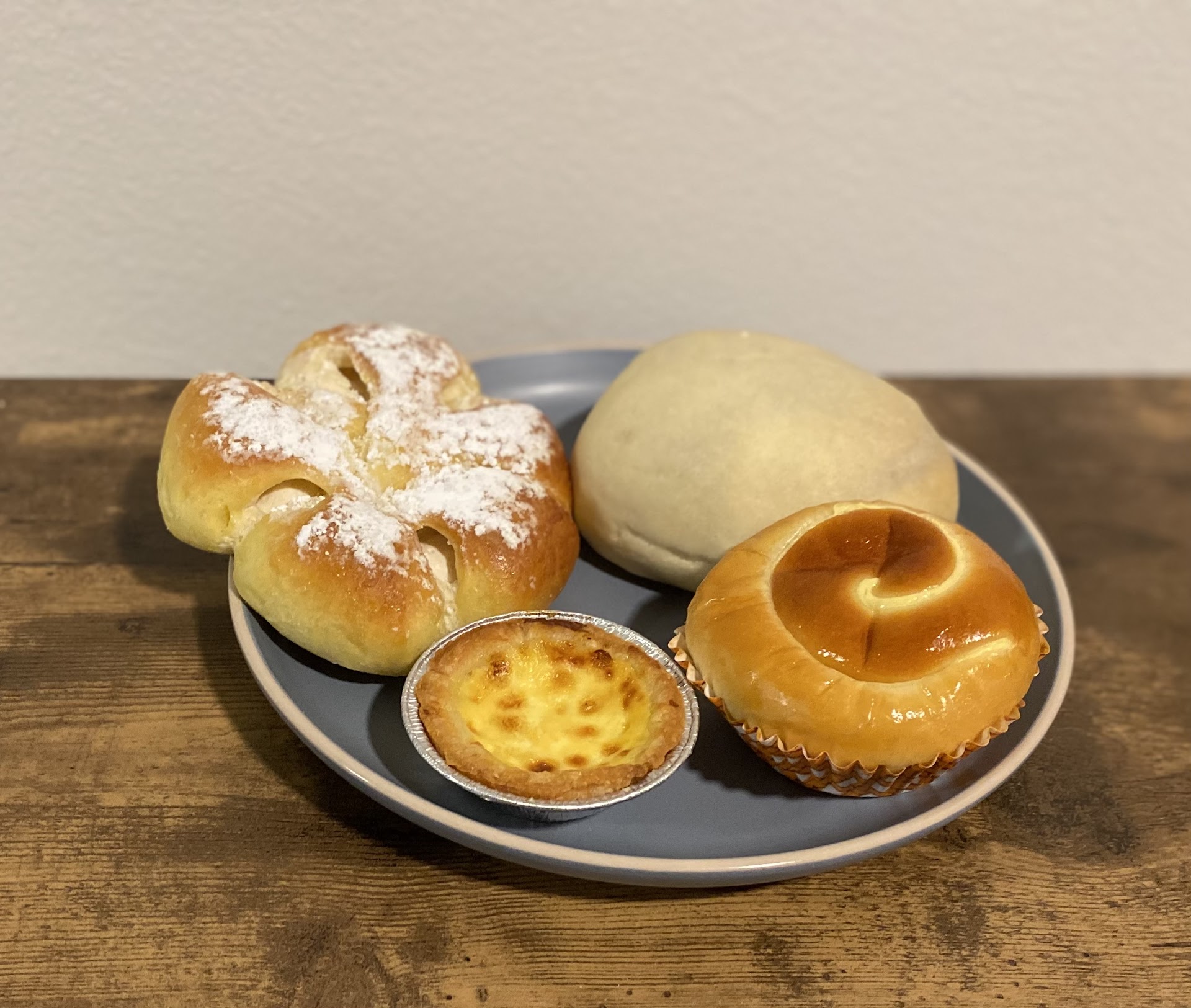 I ended up grabbing four items total - two of which were recommended by my friend. I grabbed a Premium Milk (ribbon-shaped), Marble Taro (white bun with taro filling), Milk Pudding (bun filled with custard), and an egg tart (two tarts in a box). The Premium Milk had pieces of white chocolate and a thin layer of custard in the pastry. Not sure if this is how it’s supposed to be, but I could smell hints of egg as I was eating it. I was unsure if this was due to an egg wash or if the pastry had some egg layers. The Marble Taro was this big fluffy white bun filled with a generous amount of taro. It wasn’t very sweet either. The Milk Pudding was served in a muffin liner and was very soft and pillowy. When I tore it in half there was this vanilla custard in the middle that tasted absolutely divine. The egg tarts were in a small aluminum pie tray, and they were tasty. I could tell that there was a lot of butter in the crust. The custard was well set and didn’t fall out when I bit into it.