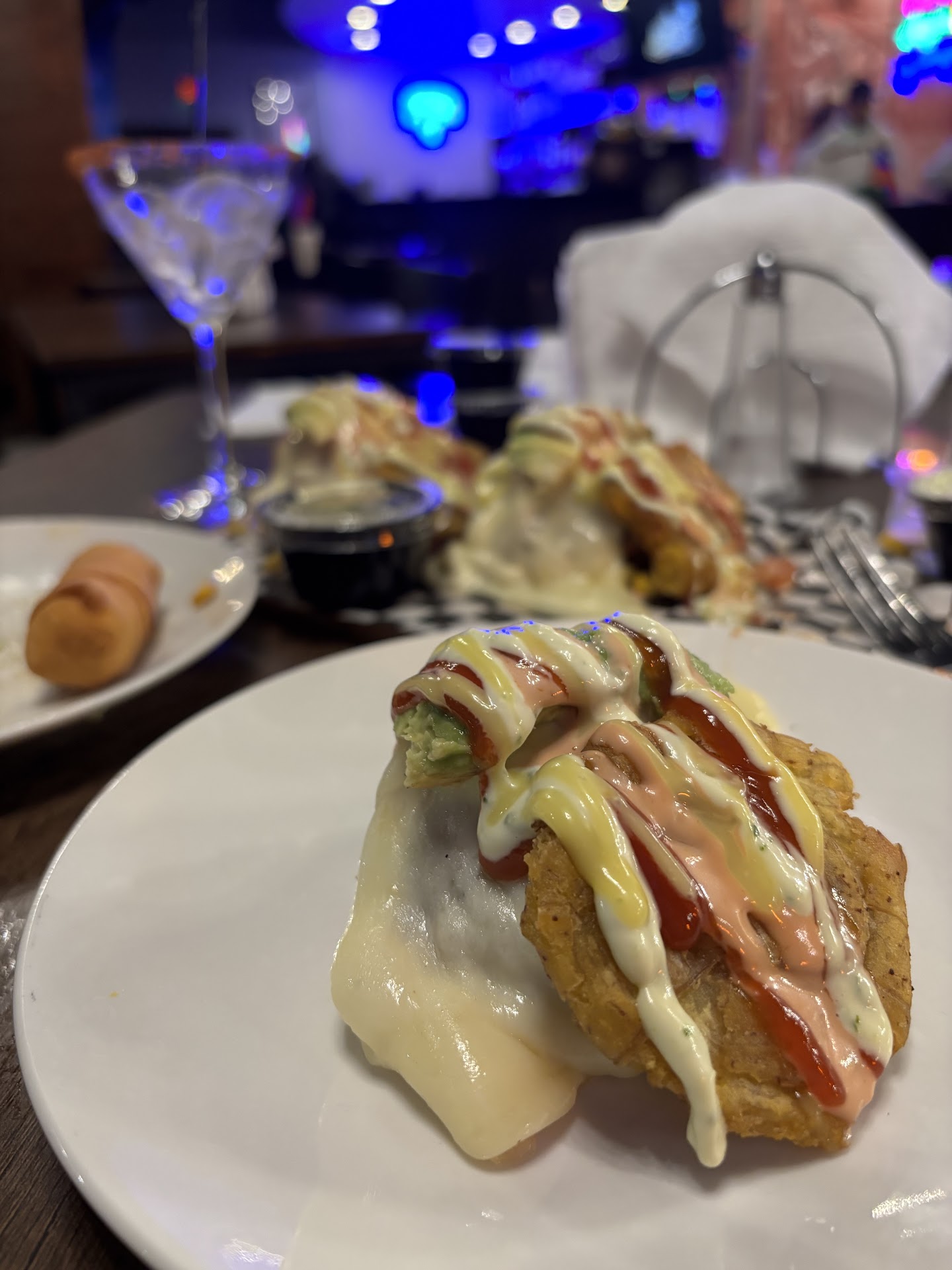 The atmosphere and overall experience was very bizarre. Part classy dining, part fast-casual, part club, part event space, part outdoor play center for kids? All of the decor completely clashed. The giant happy birthday signs were on display despite there clearly not being an event going on. The bright, colored stage lights, dance floor, and loud(ish) reggaeton music bumping at 6pm were distracting. They were coming around offering to take pictures for us. The water with lemon had so much hand squeezed lemon juice it was completely yellow and effectively lemonade minus sugar. It's like they had a ton of ideas to make them unique and didn't pick a coherent theme.