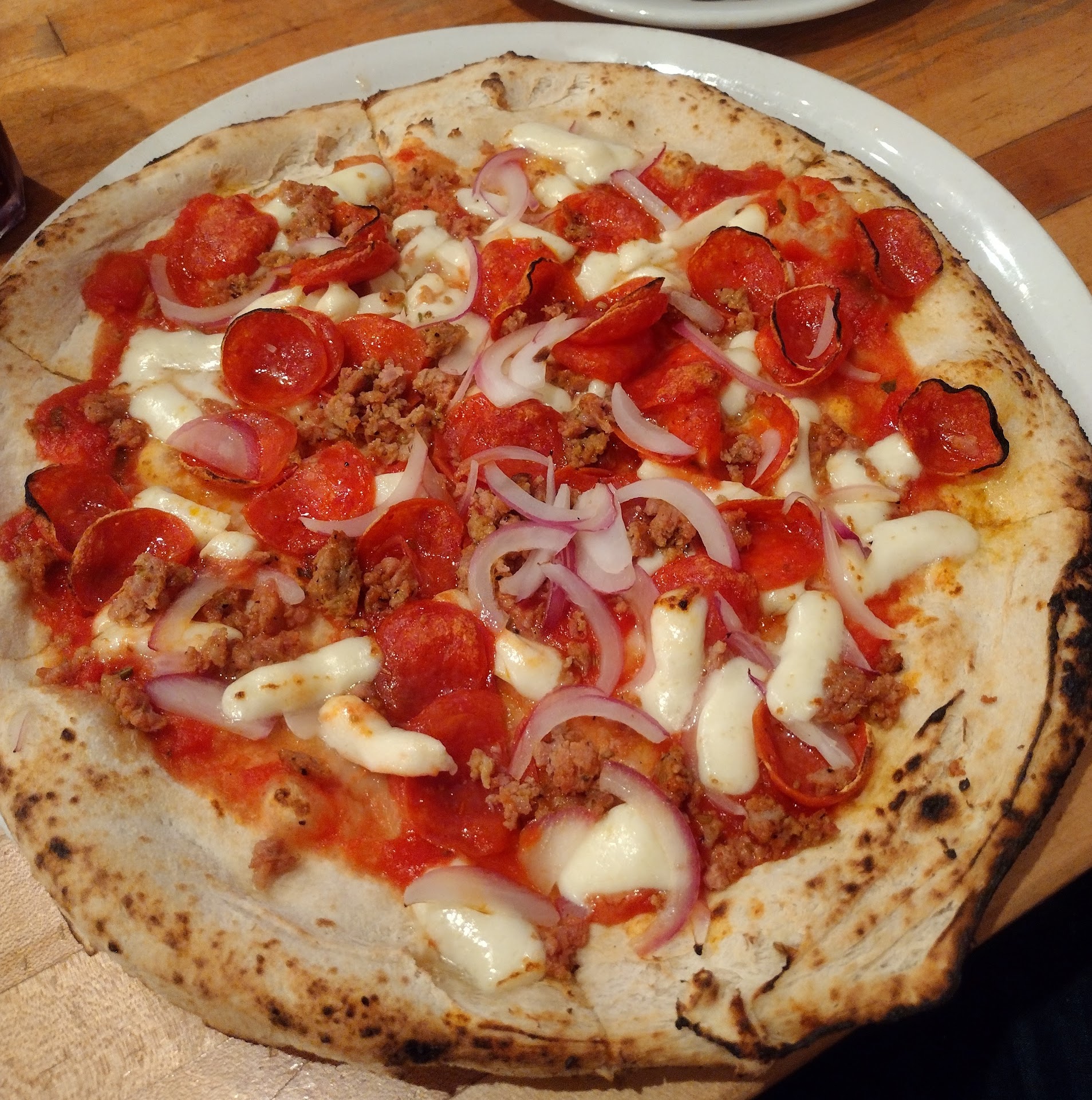 I've been to a few different wood burning pizza establishments and so far this one is the worst. 2 out of 3 of our pizzas had a burnt taste (the bottom were black) but they were beautiful for me to take a pizza and the dough was very soft.