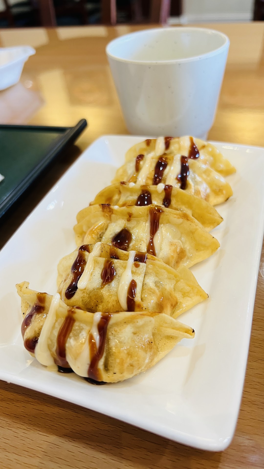 We had fried dumplings, chicken juk, and beef hot pot rice. The serving sizes were perfect. Since this was our first time to try juk, I did ask our waitress for her recommendations. She suggested chicken or beef and described the chicken juk as being similar to American chicken noodle soup. I agree with her description (chicken and wild rice soup would also be a good comparison), but would add that it has a deeper flavor, which is most likely due to the broth. It tasted like fresh, homemade stock. Our waitress also explained the sides and gave advice for seasoning the beef rice.