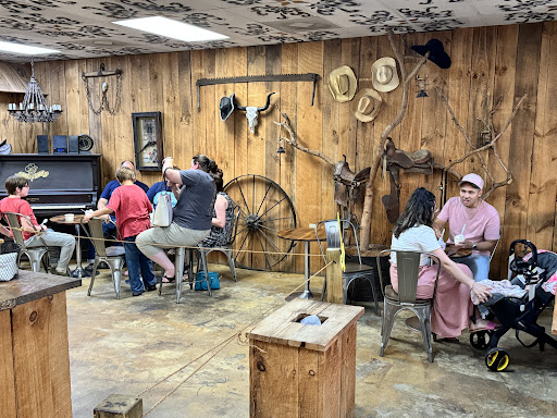 Read moreI had no idea what to expect when I made the decision to stop at this little ice cream joint after driving by it for years, but I was pleasantly surprised. Inside, there is an "Old West" Theme, which was very visually entertaining. Available flavors are displayed on a giant blackboard hanging out in front of the square raised counter. I didn't count every listing, but my best recollection is that they had about 20 different flavors when I stopped in. They had traditional flavors, like chocolate, but several unique flavors that I'd never seen anywhere before, like Carrot Cake Cream Cheese, which has a cream cheese ice cream base and bits of carrots and chunks of carrot cake disbursed throughout the ice cream. (It was great.) I tried a double-scoop cone with two flavors, chocolate and carrot cake cream cheese, which were both very good. The ice cream had a smooth, dense, creamy texture different from most commercial ice creams you find in brands like Baskin Robbins or Hershey's. Scoops were large and packed down slightly into the cone. Service was fast and friendly. Checkout was quick and trouble-free. Optional tips can be left in a bucket on the counter or via credit payment. Two scoops on a basic sugar cone ran $8.50 (which includes tax), so it's a little on the expensive side, but makes a nice...