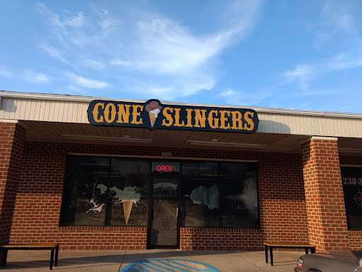 SECOND VISIT Gave them another try since my youngest requested the "Cowboy place" to celebrate finally getting over some illnesses. It seemed like they had 20 flavors tonight. He went with the gun powder chocolate single scoop in a cup. After eating 3 bites, he decided he wanted to bring it home to eat later, so I got him a lid. I went with a double dip of Cowpoke cookie and maple bacon brickle with the chocolate waffle cone. I mentioned to the older gentleman behind the counter that the last time we came the ice cream didn't actually fill the cone. He assured me it would be correctly filled this time around. Cone had 100% fill success. Cowpoke cookie was a sweet cream with large portions of Oreo cookie in it. Maple bacon brickle is delicious, I'll get that every time it's on the menu. The only problem we had was the tables. They spin like a Texas twister. I was solo with my youngest, and being that he's preschool age, a spinning table simply MUST be spun. I'd repeatedly told him not to do so. I had to get more napkins and ZING his ice cream went flying against the wall, knocking the lid off. Naturally it landed face down on the floor. Hopefully he learned a valuable lesson about doing as your parent tells you. I learned that Cone Slingers tables are an accident...