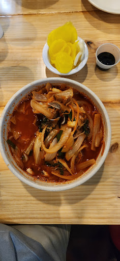 I would've excused their terrible service if they had decent food but their food was TERRIBLE. There was dirty food over one of the water cups and the table wasn't properly cleaned. Also, the extra glass bowls they gave us were all chipped and broken. My family ordered their jjamppong and jjajangmyeon and both tasted so bad. The jjajangmyeon was the worst I've ever tasted. And it was so obvious they added ramen powder to the jjamppong, I was at loss for words. I had never tasted food so trashy from a restaurant. Not only that but my food came out late and when the lady served it to me SHE REACHED OVER ME AND MOVED A BOWL OF HOT NOODLES NEAR MY FACE WITHOUT EVEN SAYING SOMETHING SO I WOULD KNOW SHE WAS THERE and she proceeded to slam the bowl over me. Also the old man there cleaning up the tables left the dirty tray full of all the used foods right next to our table. I was appalled by their terrible service and I felt like we were being treated like trash. But seriously DO NOT EAT HERE THE FOOD AND SERVICE IS TERRIBLE. Our experience here ruined our entire night...