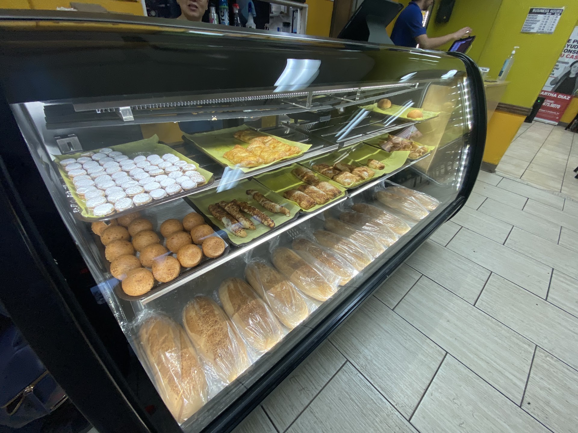 The Almojabanas (circular biscuit at top right of picture) were this dense and chewy biscuit that imparted something like a cheese flavor, but they were very tasty. I felt like this would go well with a meal or some coffee/tea. The empanadas (rectangular shaped) were filled with cheese and chicken. They were an interesting taste and didn’t really remind me of chicken and cheese. Each of the pasteles el portal (triangle shaped) were delicious; I grabbed one of each of a caramel & guava and figs. The roscones (ribbon-shaped) was filled with guava and that was really good as well. The pastries were all flaky and fresh. I ended up also getting these tiny cookies called Mil Hojas that were basically a cookie with powdered sugar on top and a portion of caramel in between. These would have gone great with a coffee and they were quite sweet! Lastly, the Buñuelos (brown sphere) I grabbed was basically cheese on the exterior and a dense salty bread on the interior. This made my mouth feel a little dry when eating, and I wondered if I should have paired with a drink.