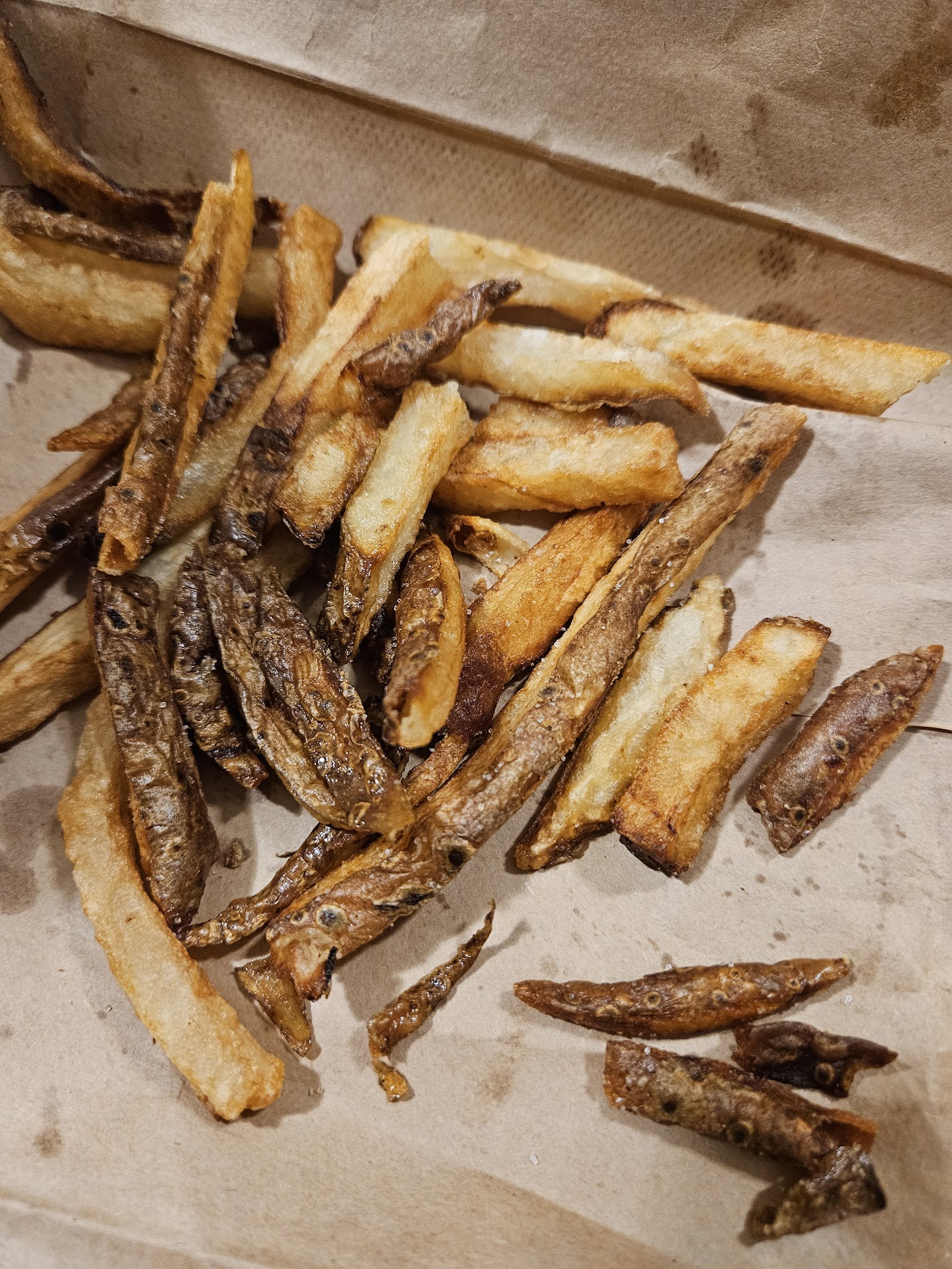 By the way there were only three of us in the place. And I think I saw three or four of the big baskets of fries being dropped down. You think those were going to be fresh by the time somebody arrived to eat them?