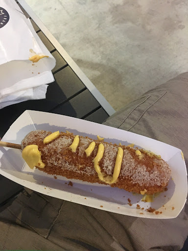Ā Ā Ā Read moreHonestly, AMAZING Korean-style corndogs (aka "gamja hotdogs"). Please note I ordered the SEOUL Dog. While the inner hotdog core of this awesome treat is nothing too special, it is pretty large. The BEST part of the Korean-style corndog is, of course, the crispy coating. It was absolutely delicious: Super Crispy, Savory, and Sweet (if you choose to have it rolled in sugar). The condiments complimented my corndog - cheese and honey mustard. They also do have the usual (and semi-usual) condiments: regular mustard, ketchup, mayo, sriracha, etc. The drinks (didn't get to take photos) are equally amazing. I got the "kiwiade". Perfectly sweet (not overly or disgustingly sweet), fresh, and sparkling. I usually don't like fruity drinks, but you HAVE TO get them here - they absolutely compliment the corndogs. I have a feeling this store is going to be a HIT all this summer...