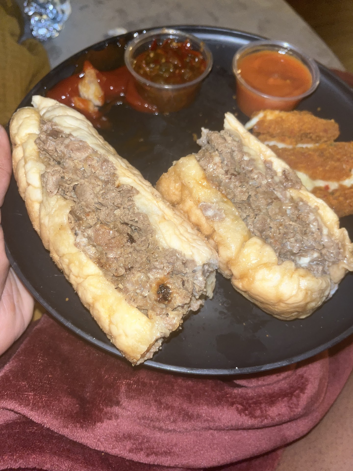 Tried both the cheesesteak and cheesesteak with mushrooms (on different occasions). Very well cooked and tasty. Even better with a bit of the house sauce. For my taste, the best cheesesteak I've had so far in Dallas. But don't forget about the fries. Crispy and crunchy on the outside and soft and tasty on the inside. And they are the thin fries which I prefer.