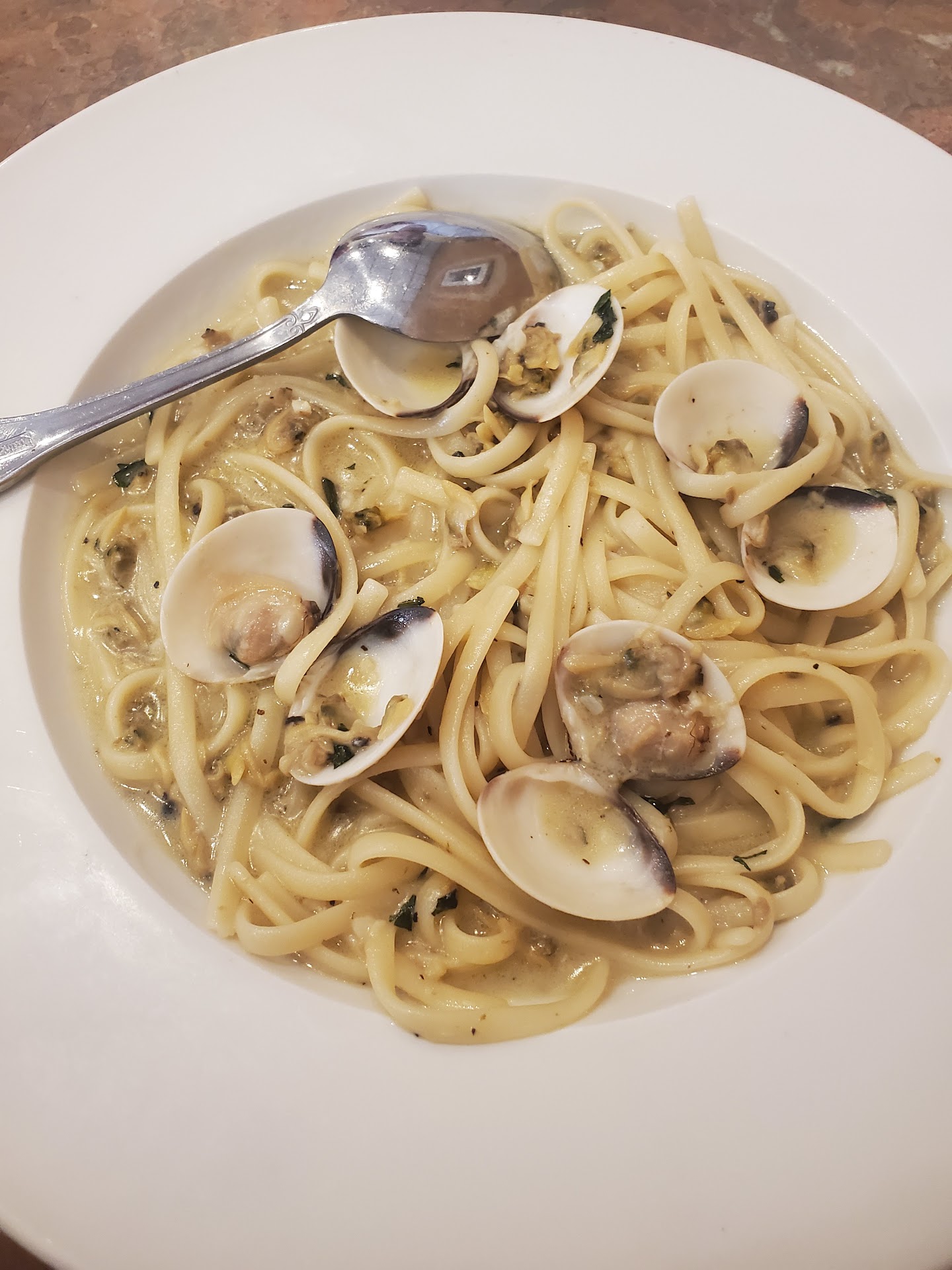 Ā Ā Ā Read moreWhen first entered restaurant there was no music playing. When I mentioned this to the server he just replied with oh yeah. Our entire meal we sat there listening to the phone ring and hearing Togo orders be taken. Upon being seated the waiter dropped off bread for the table. It tasted like toasted stale bread. Ordered calamari as an appetizer, could not finish it because it was hard and chewy. When the waiter took our order he mentioned that we ould receive side salads and asked what type of dressing we would like. We replied ranch. Our side salads never came. I ordered the clam linguine with white sauce. It was pretty good. Wanted to order dessert but was so fed up with listening to the answer machine and other guests chewing, so I opted to leave. After 10 minutes of not receiving my check. I look over to see the server texting on his phone. My party gets up from the table to ask for our check. He replies oh yeah sorry, I had to deal with this lady. Right as he was about to print the check, the phone rings and he answers it and spends an additional 3 minutes trying to correct and Togo order that was messed up. Extremely irritated with this experience, we finally paid and left. This was one of the worse dining experiences I've had in...